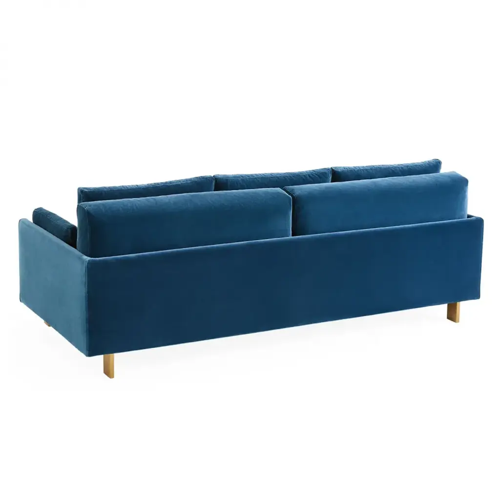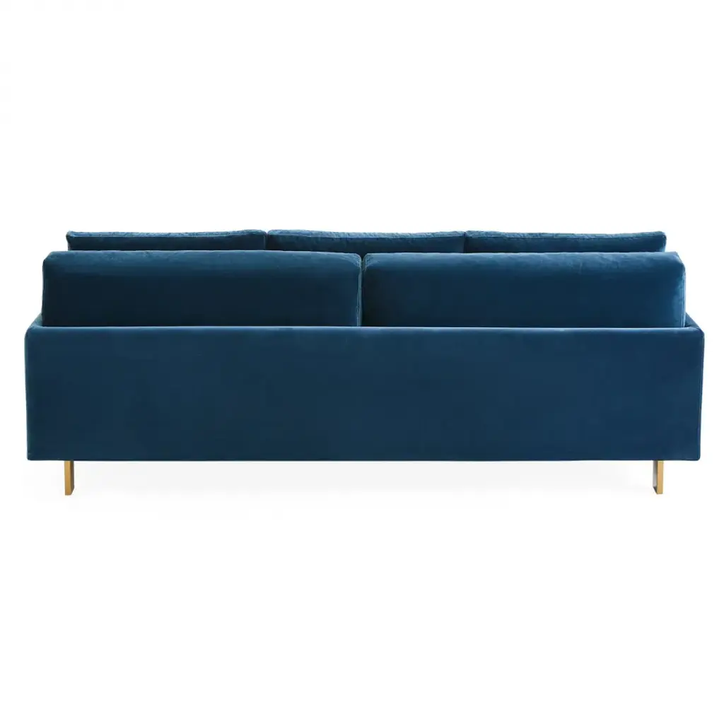 California Modern.Deep and squishy, family-friendly, and très chic—you can have it all. In Varese Petrol velvet with minimal brushed brass legs. Combine details like inviting pin-tucked back and side cushions, with (surprise!) removable, dry-cleanable slipcovers and everyone can go mad.Formal, yet informal, our Malibu Sofa has the right charisma for a Brooklyn brownstone or Park Avenue penthouse.