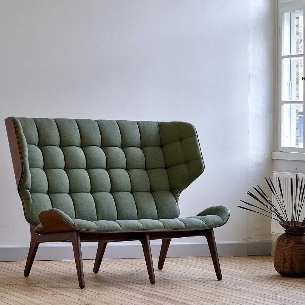The Mammoth Sofa by Rune Krøjgaard and Knut Bendik Humlevik is an elegant piece of furniture with the comfort of a lounge chair but the size to fit at least two people. The welcoming wings provide a sense of privacy and serenity, making the Mammoth Sofa perfect for public spaces, hotel lobbies and modern workspaces. The sofa pairs well with the Mammoth Chair offering numerous possibilities of creating smart, intimate interiors with a warm and welcoming appeal. The Mammoth Sofa is hand-crafted with a solid oak frame and seat and back of laminated oak veneer.