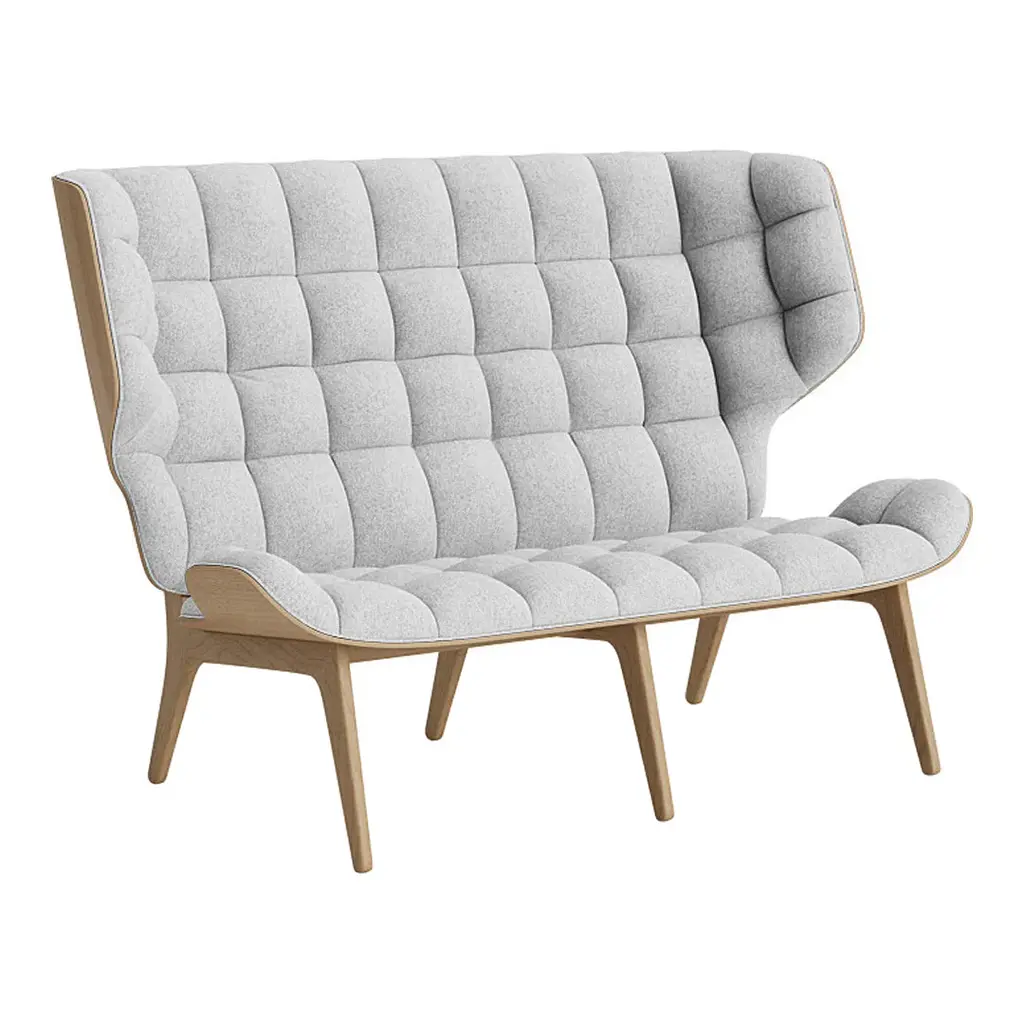 The Mammoth Sofa by Rune Krøjgaard and Knut Bendik Humlevik is an elegant piece of furniture with the comfort of a lounge chair but the size to fit at least two people. The welcoming wings provide a sense of privacy and serenity, making the Mammoth Sofa perfect for public spaces, hotel lobbies and modern workspaces. The sofa pairs well with the Mammoth Chair offering numerous possibilities of creating smart, intimate interiors with a warm and welcoming appeal. The Mammoth Sofa is hand-crafted with a solid oak frame and seat and back of laminated oak veneer.