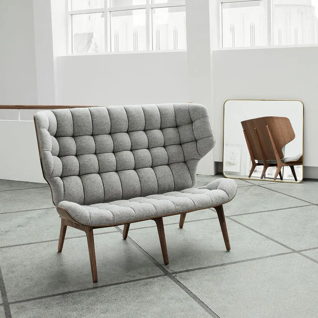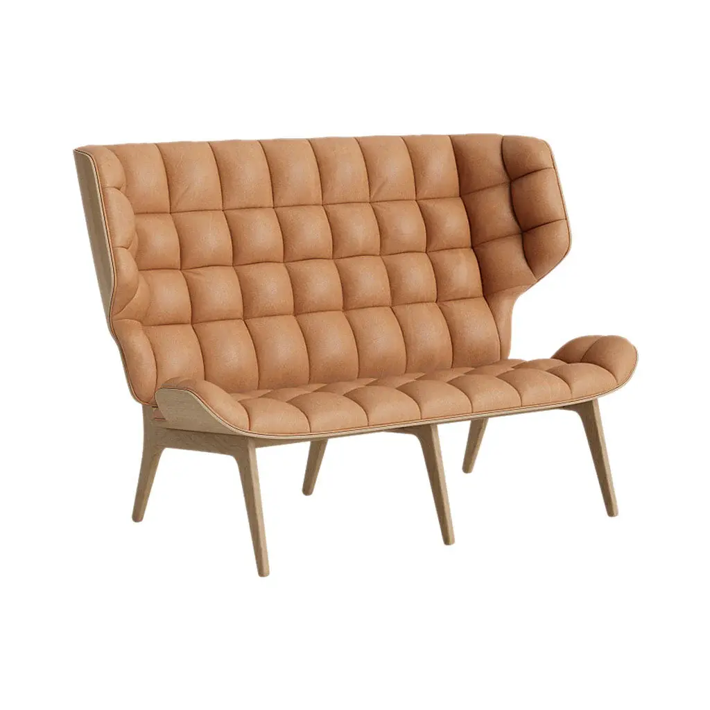 The Mammoth Sofa is a spacious, two-seater sofa that maintains the signature high back and winged design of the Mammoth series. It features a solid oak frame with a seat and back made of laminated oak veneer, upholstered for a plush front surface. Available in 4 oak finishes, the sofas welcoming wings provide a sense of privacy, making it ideal for public spaces like hotel lobbies and offices.