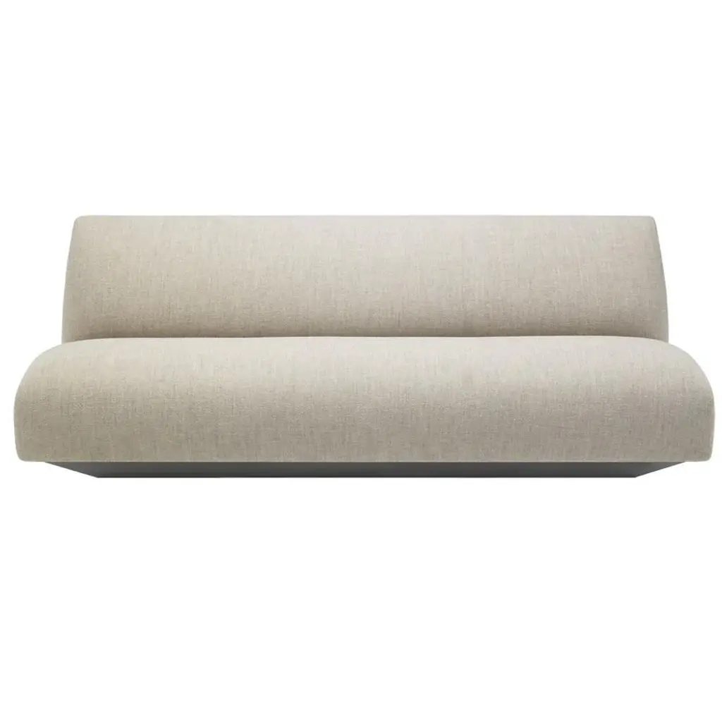 3-seater sofa with upholstered seat and backrest and wood base.Manfred is a program of modular sofas designed to be used collectively or individually in large lobbies or relaxation zones of contract workplaces. The collection consists of an individual armchair and two or three sofas. Wood arms are available for all versions. The lines of the Manfred are defined by the padded body and make for a comfortable place to rest. The design is characterized by its large presence, comfort and adaptability. Manfred sits on a base that is slightly tilted inward, allowing for organizing and cleaning the surrounding space.Please note: All Manfred wood bases are finished in RAL 7022 (Umbra Grey).