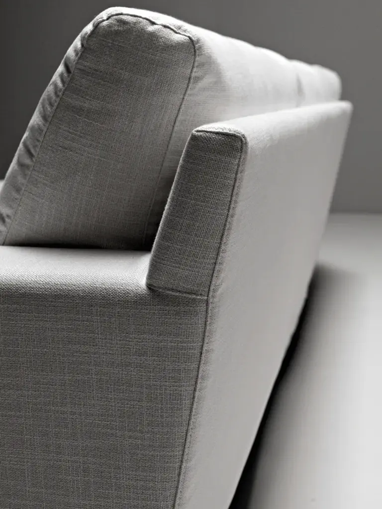 Dimensions: H: 33 3 ⁄ 16” L: 97 3 ⁄ 4” D: 41 3 ⁄ 8” H: seat 15 3 ⁄ 4”This collection of sofas and armchairs, characterised by the welcoming size of the seat cushions and the soft cushions on the back, can be used in any composition, including pairings with expansive, corner elements. The structure consists of a wooden frame covered with non-deforming, expanded polyurethane padding of different thicknesses and polyester fibres, with feather cushions on the back, and the seat on elastic straps, guaranteeing total comfort. Lacquered wood or aluminium feet with polished or opaque finish. The upholstery comes in removable fabric or nonremovable leather.
