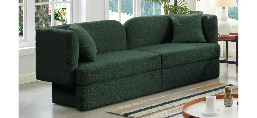 Bring artsy fun to your room with this Marcel Boucle Fabric Sofa. This eye-grabbing sofa is part art, part functional seating item for your living room, bedroom, and beyond.