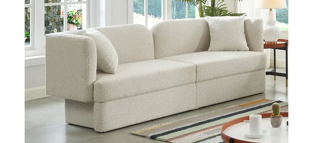 Bring artsy fun to your room with this Marcel Boucle Fabric Sofa. This eye-grabbing sofa is part art, part functional seating item for your living room, bedroom, and beyond.