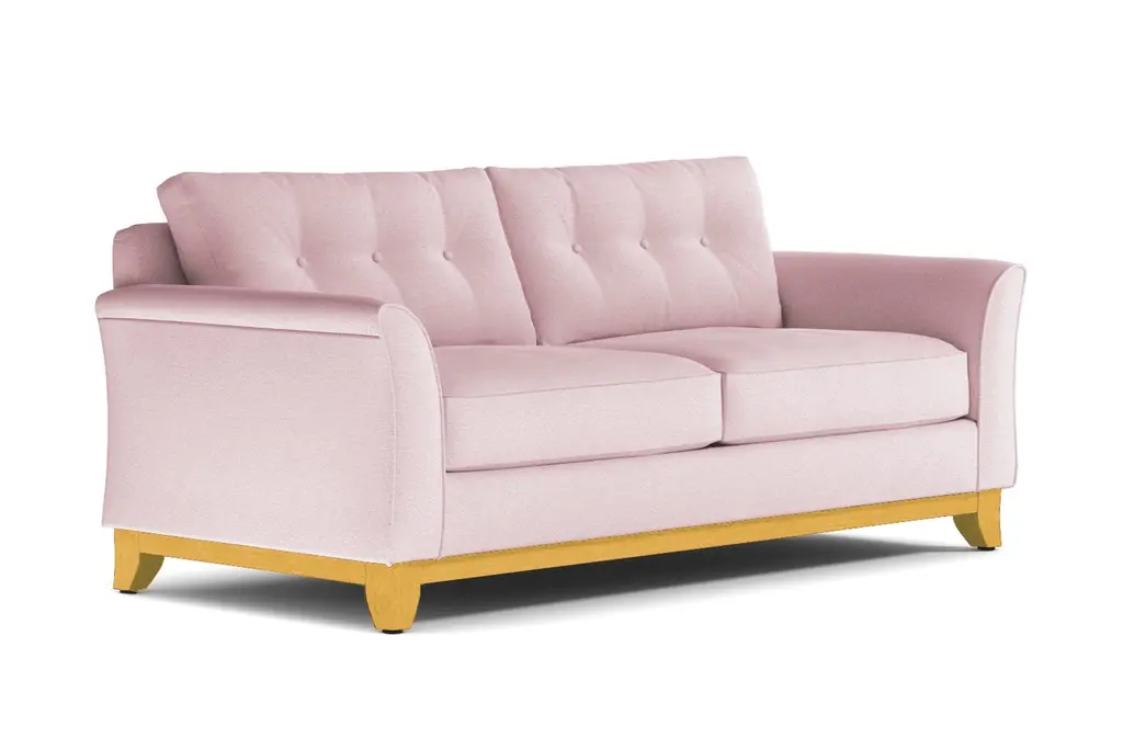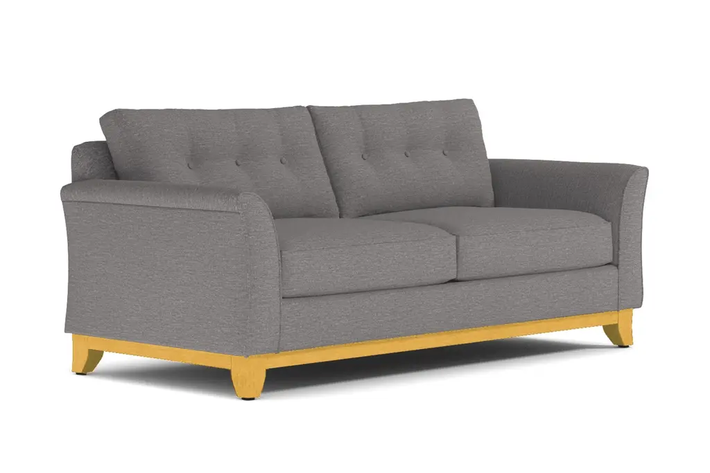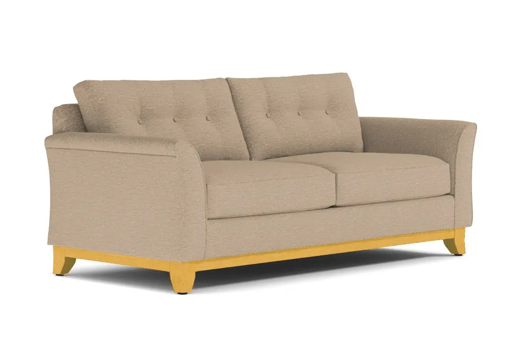 It's not always easy to find comfortable furniture that's also stylish and on trend. That's where Apt2B comes in. We specialize in high-quality modern furniture and we never sacrifice comfort. Who cares how awesome your sofa looks if you can't bear to sit in it? Take our Marco Sofa, for example. Its flared silhouette and button-tufted cushions rock the modern style, but it's also the perfect spot to relax and watch a movie or grab a quick cat nap. The wooden base is stained in a rich espresso finish that compliments any of the 27 available color choices. And your choice of upholstery includes everything from microfiber, polyblends, basket weaves and more. Apt2B offers a 100-percent satisfaction guarantee. Make yourself comfortable on the Marco Collection. Tufted buttons on the back cushions, and a wood base stained in a rich, espresso finish give it a modern look.