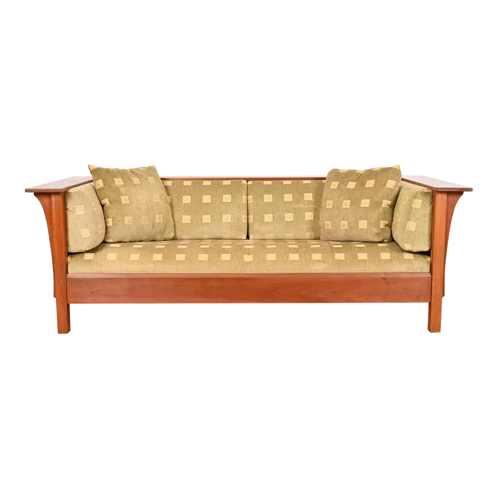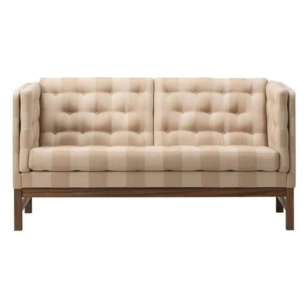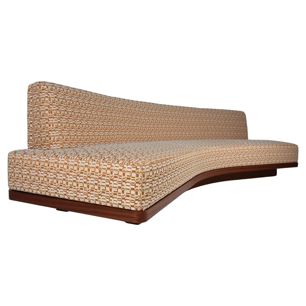 This sleek, low sofa was originally created by iconic Italian designer Gianfranco Frattini for the fashionable Restaurant St. Andrews in the heart of old Milan. Now, a modern classic returns with the same spirit of the original design, with room for three. Period-authentic details include hand-sewn button tufts on the interior sides and cushions, along with the inset walnut legs that are characteristic of the designer's signature style. CB2 exclusive.