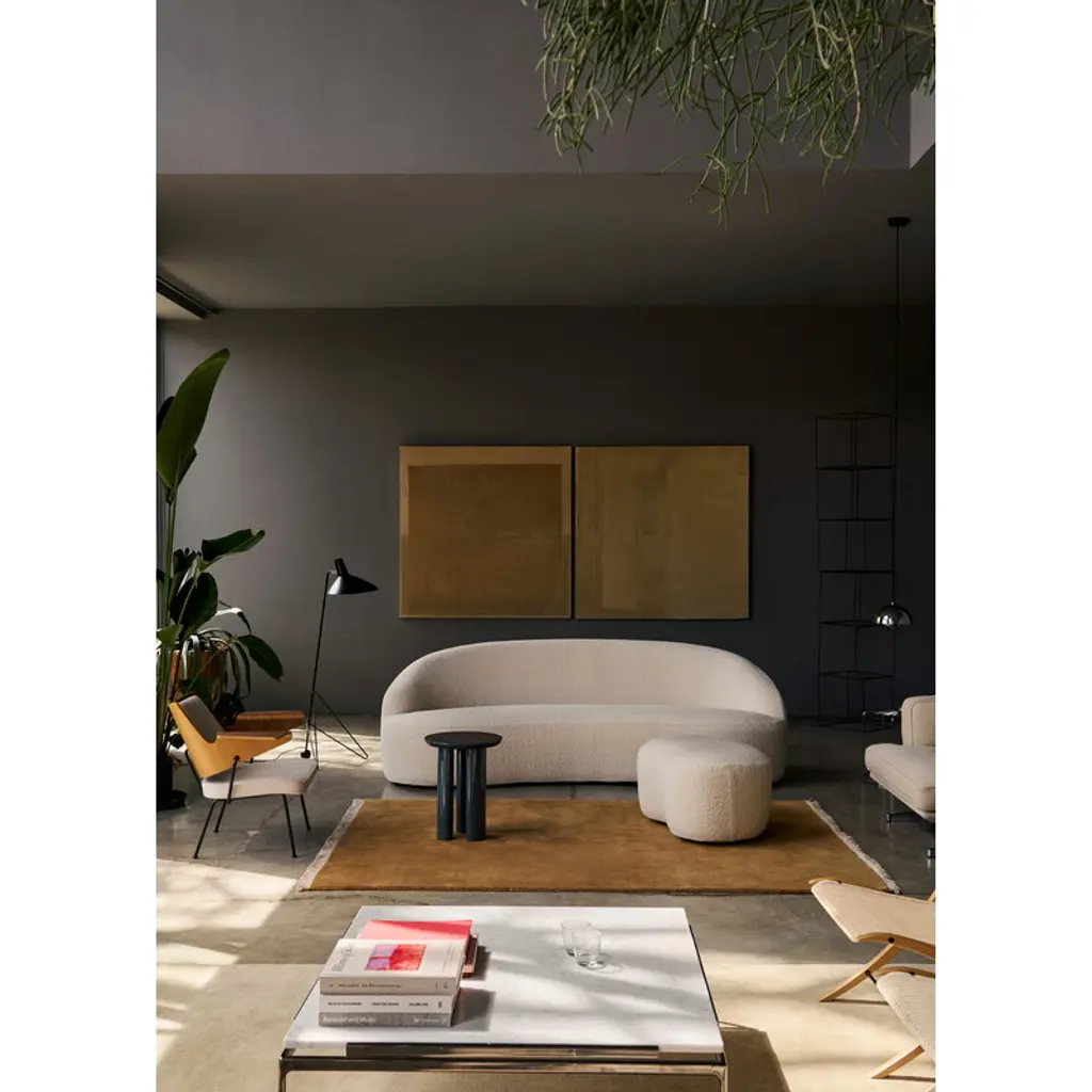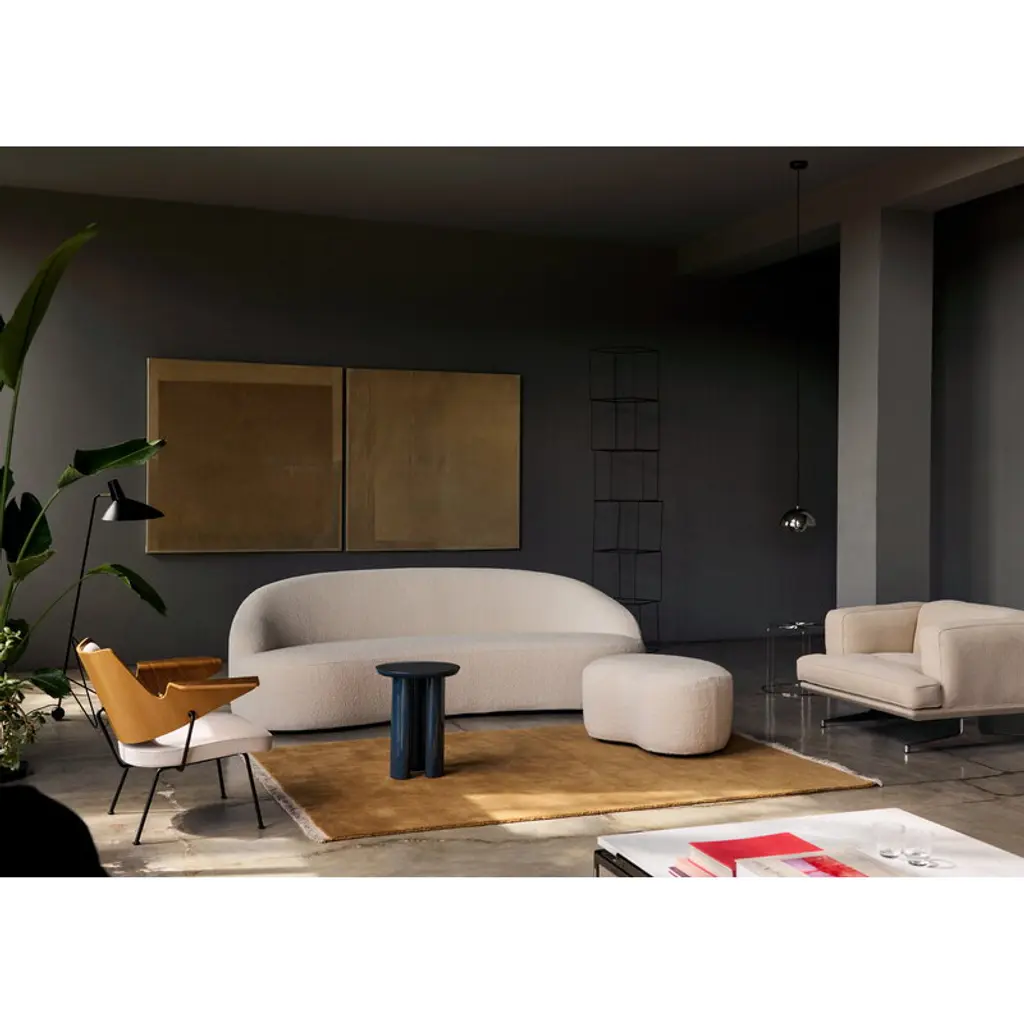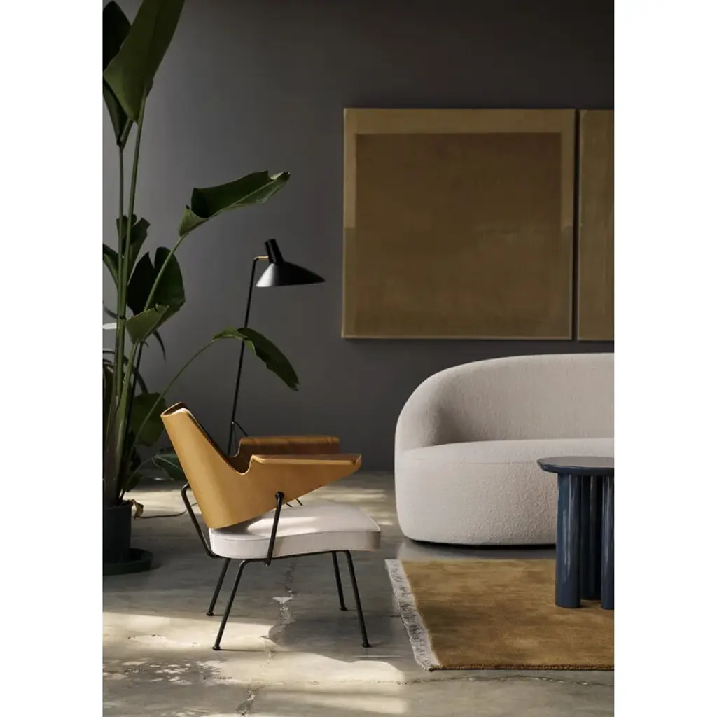 The Margas sofa by &Tradition combines an inviting, plush form with decadent elegance and playful design details. Conceived by Louise Liljencrantz, the sofa is named after the designer’s grandmother Marga von Dardel – Liljencrantz credits Marga as her biggest role model. The Margas sofa features a softly curved, wool blend upholstered seat which is carried by short wooden legs. Despite the somewhat striking, almost regal seat, the bulky legs help keep the sofa’s design cozy and inviting, making it ideal for a variety of uses in a variety of locations: the low, comparatively small 3-seater is the perfect addition to a small living room and makes a lovely room divider, as well.