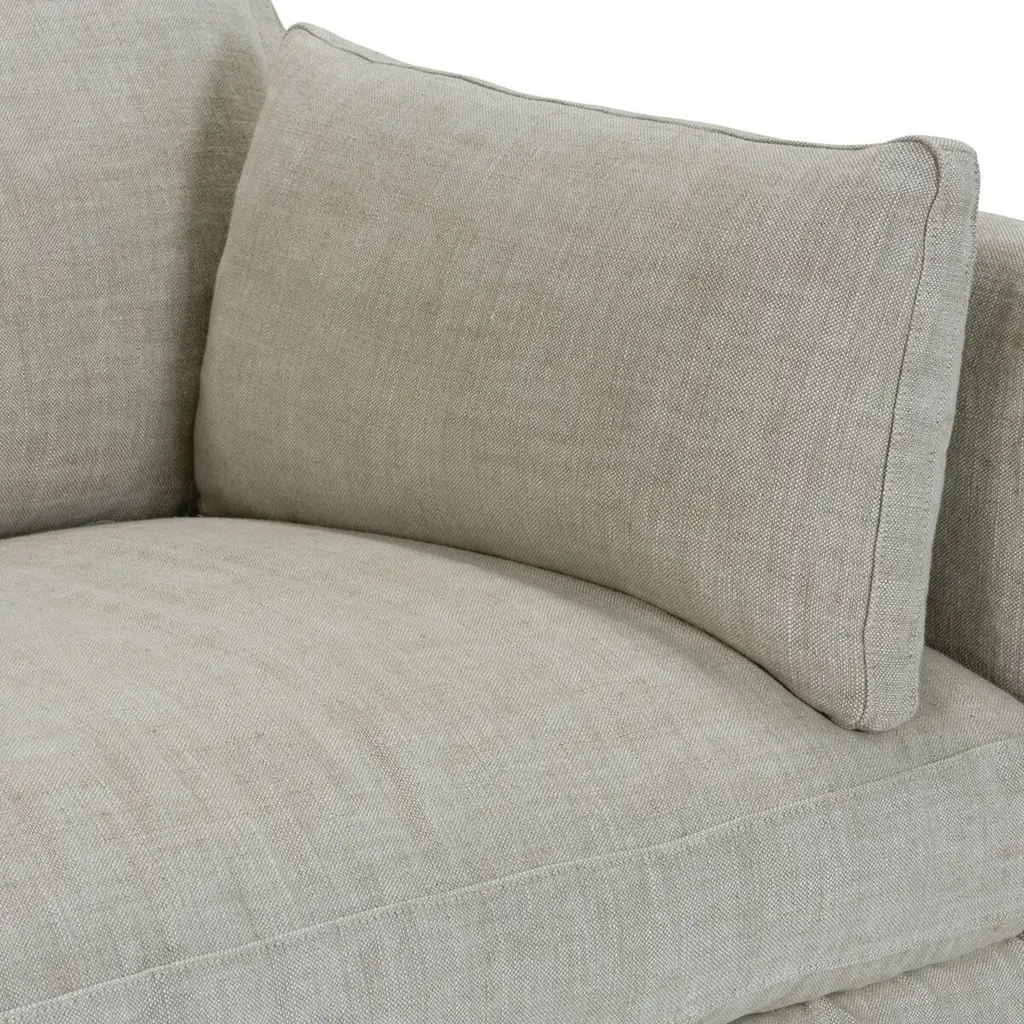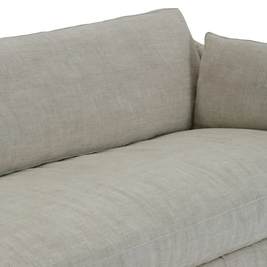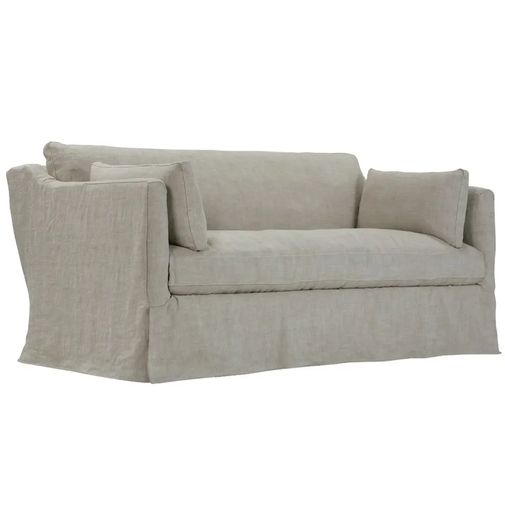 Welcome to the Margot Slipcovered Sofa. Relaxed yet refined, combining sophistication with a playful contemporary style, the Margot is ready to rise to any occasion. The material feels linen-like, offering a touch of elegance and comfort. Includes two 14" x 25" bolster pillows.