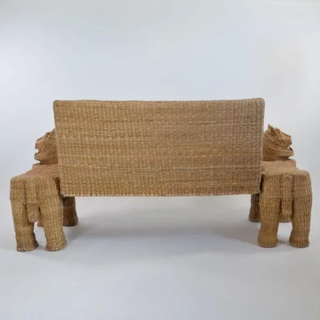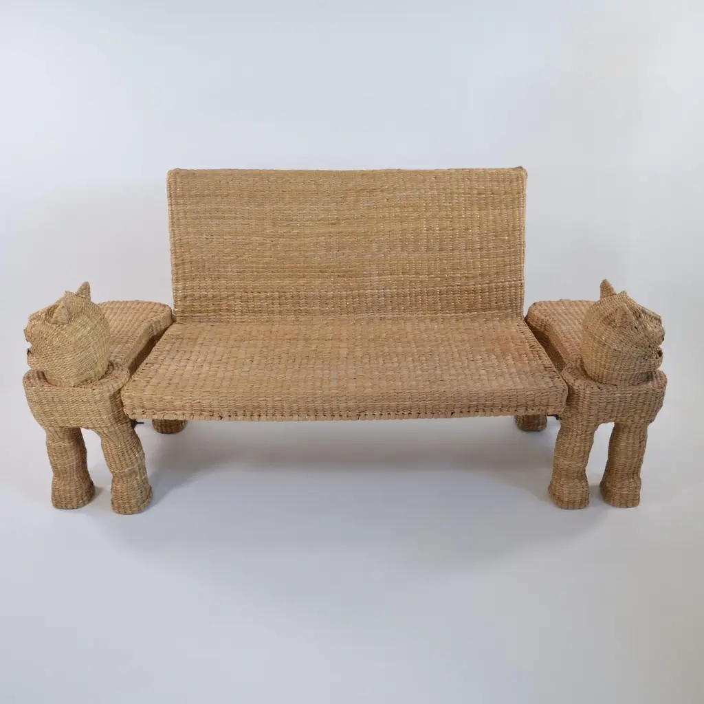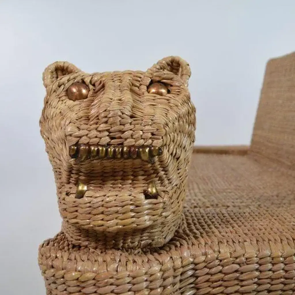 Mario Lopez Torres Woven Rattan Jaguar Sofa. There are minor imperfections to the hand-made woven rattan. Signed Mario Lopez Torres. Brass accents. (see photos)