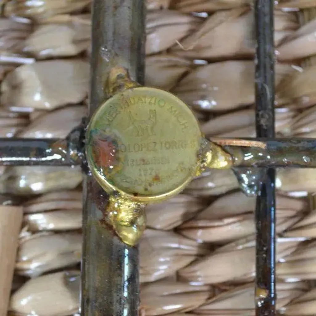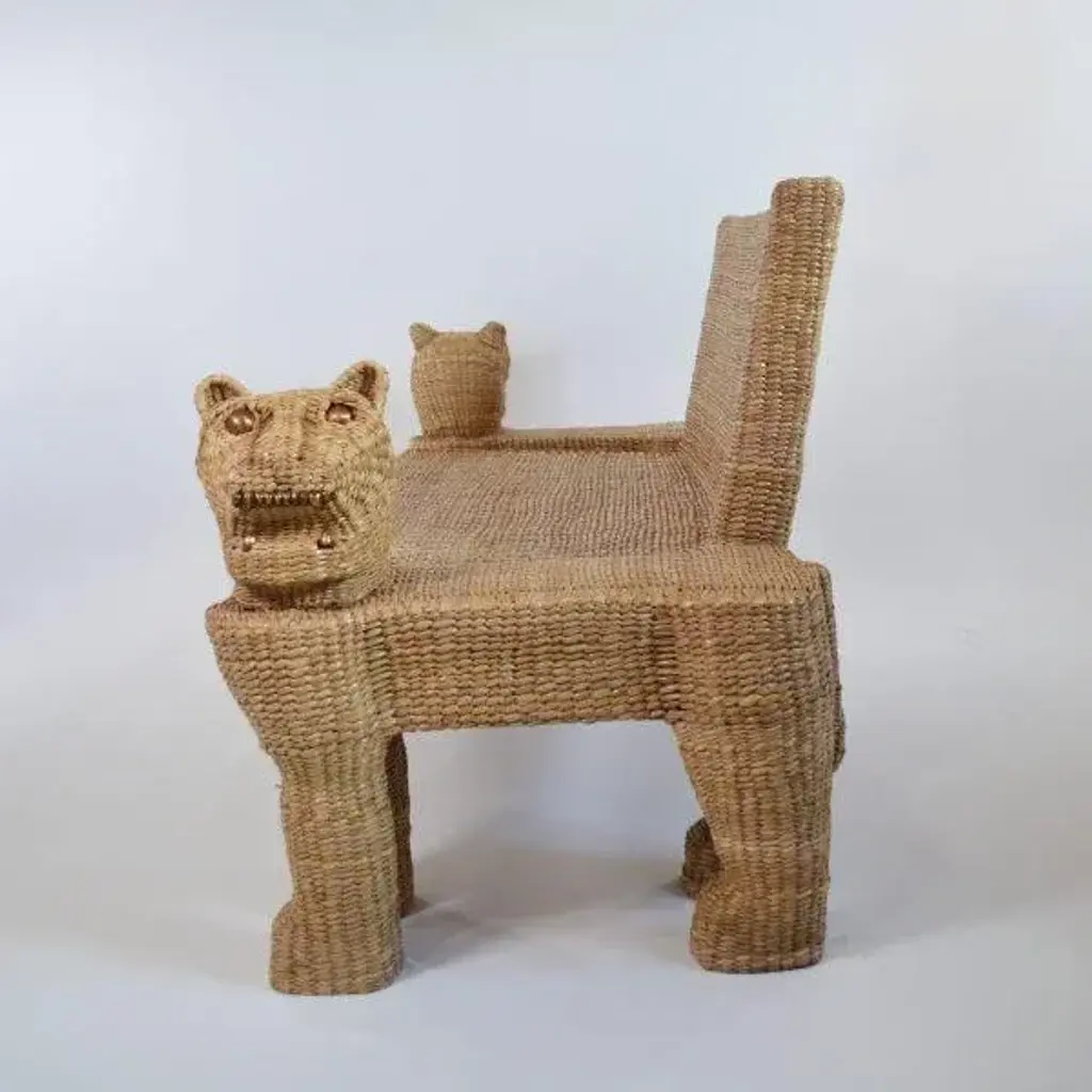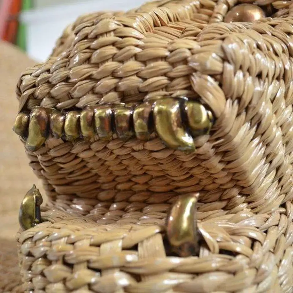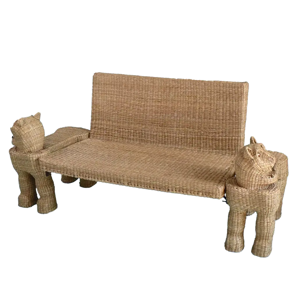 Mario Lopez Torres Woven Rattan Jaguar Sofa. There are minor imperfections to the hand-made woven rattan. Signed Mario Lopez Torres. Brass accents. (see photos)