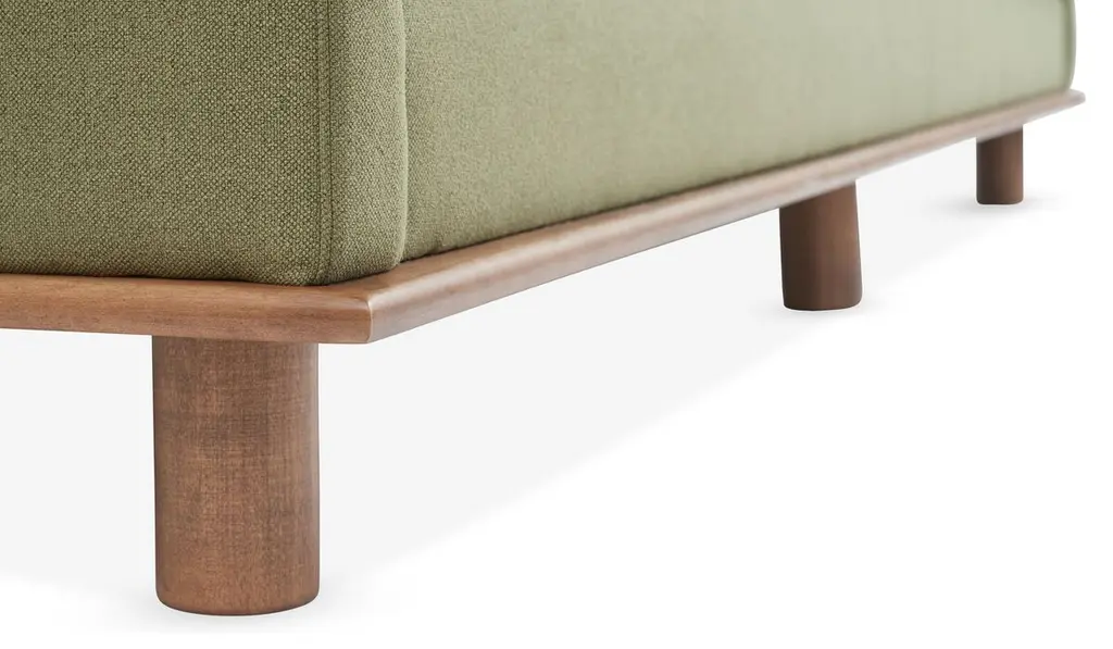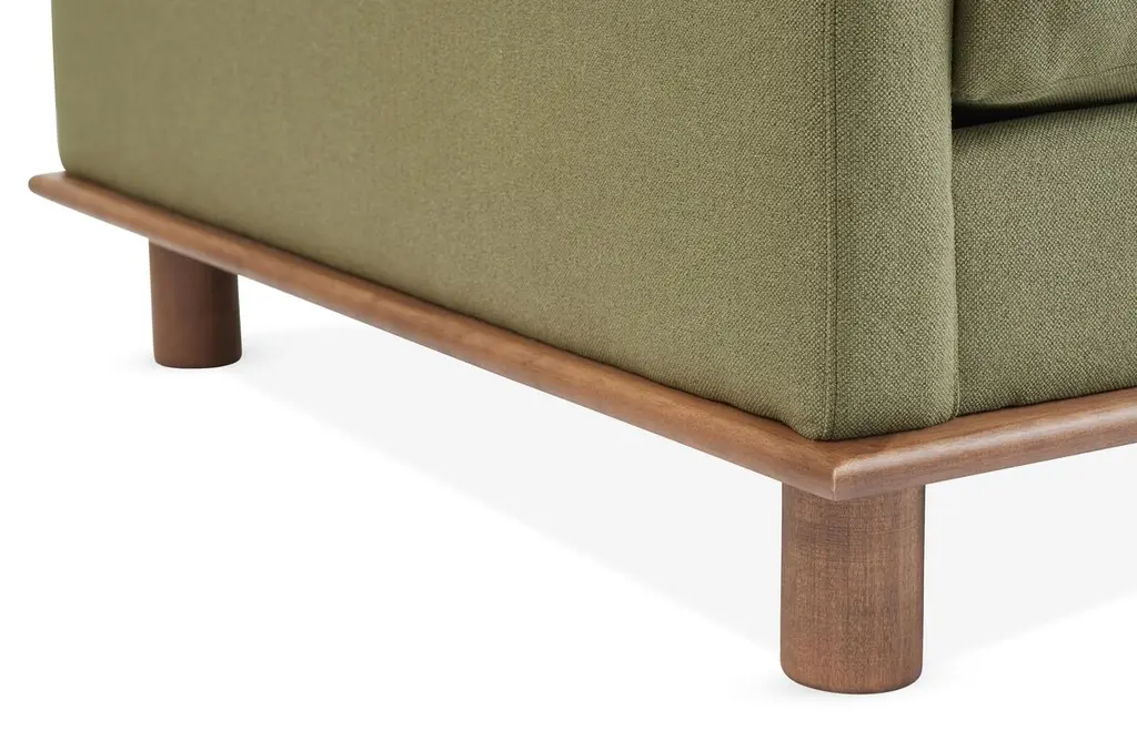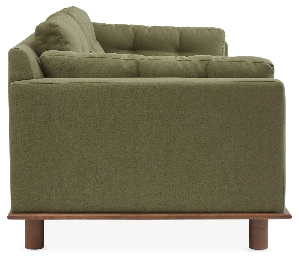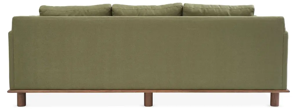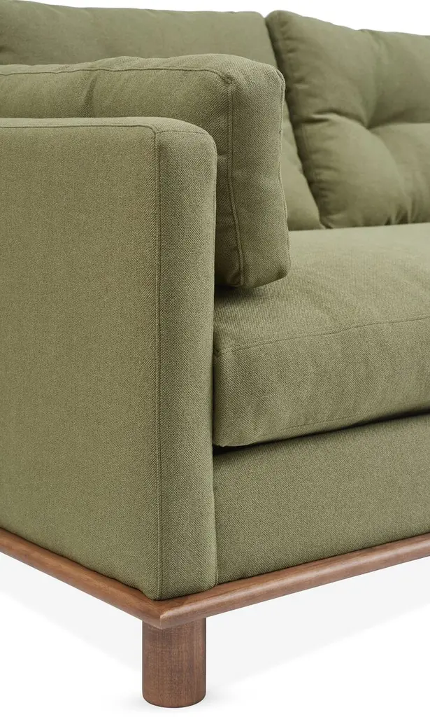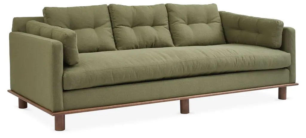 Available online exclusively at One Kings Lane: Relaxed and refined, this sofa is framed in poplar with an exposed base and round feet. Outfitted with tufted cushions, this sofa is upholstered in Crypton--an eco-friendly high-performance fabric that repels stains, spills, bacteria, and mold--and filled with foam and fiber for outstanding durability and comfort. Handcrafted in Southern California.