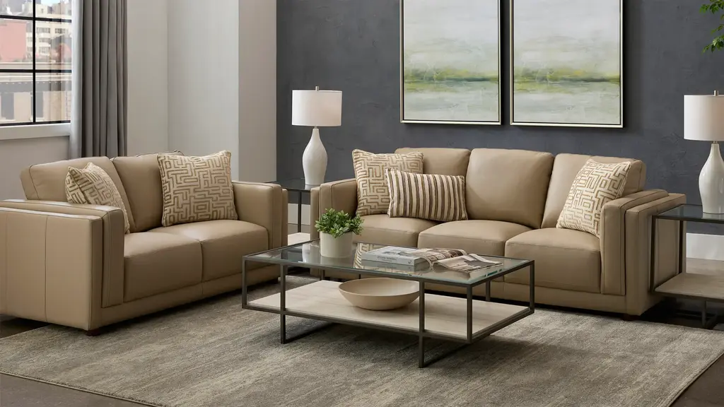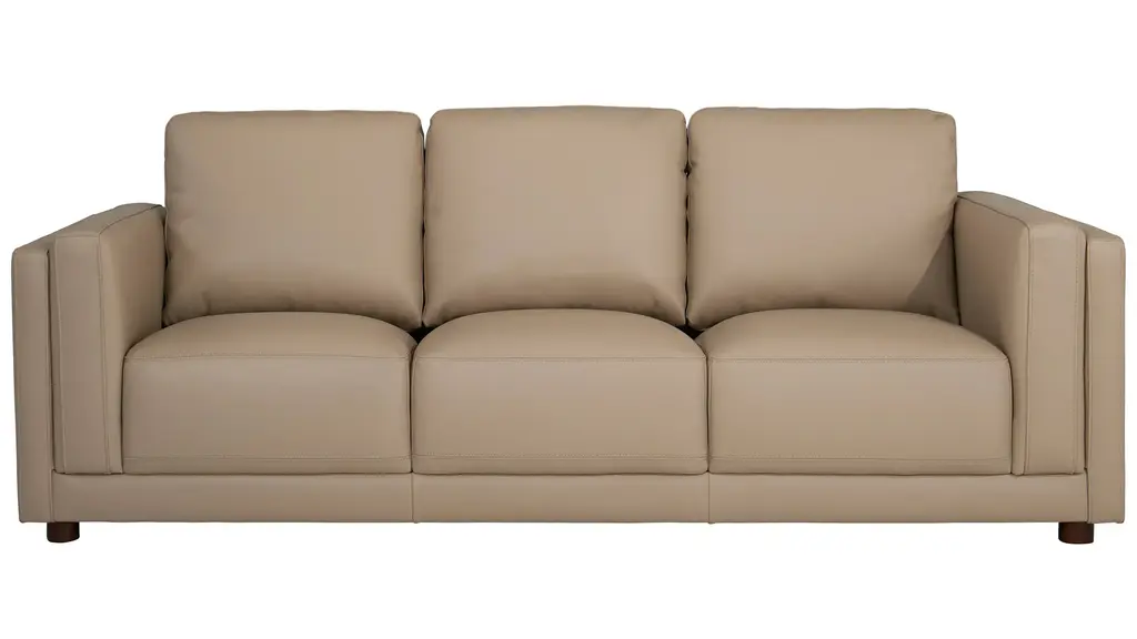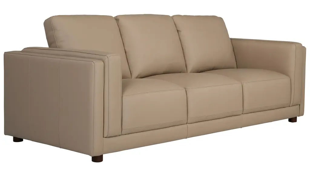 Sink into modern sophistication with the stunning Marni leather sofa. Wrapped in buttery soft leather, it delivers upscale comfort with clean lines, deep seats, and double-wide track arms for a contemporary edge. Plush back cushions and accent pillows in textured patterns add layers of style and support. Bold yet timelessthis is luxury you can live in.