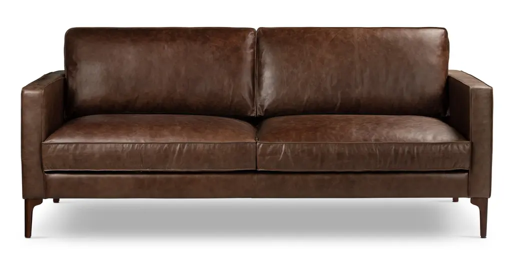 Grab some plush pillows, throw blankets, and extra-buttery popcorn— the Mateo Sofa is ready to pack in the family for movie night. This leather sofa warms up any home with its full-grain pure-aniline dyed Italian tanned leather upholstery in a warm cognac tan hue. A kiln-dried, solid wood frame with Pirelli webbing supports your loved ones, while the relaxed and subtly reclined silhouette helps create the cozy and cool atmosphere you crave.