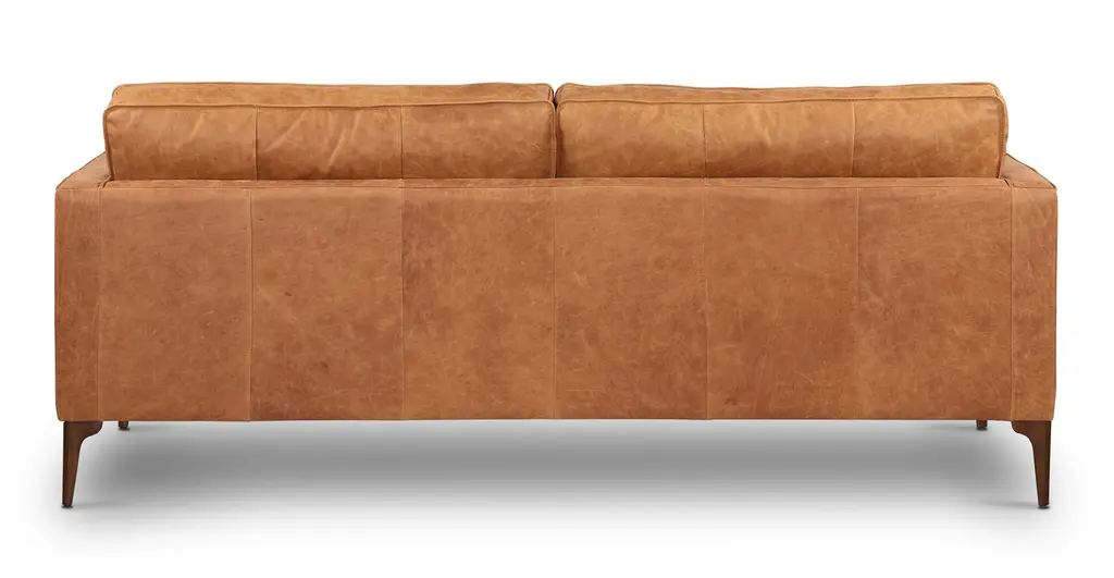 Grab some plush pillows, throw blankets, and extra-buttery popcorn— the Mateo Sofa is ready to pack in the family for movie night. This leather sofa warms up any home with its full-grain pure-aniline dyed Italian tanned leather upholstery in a warm cognac tan hue. A kiln-dried, solid wood frame with Pirelli webbing supports your loved ones, while the relaxed and subtly reclined silhouette helps create the cozy and cool atmosphere you crave.