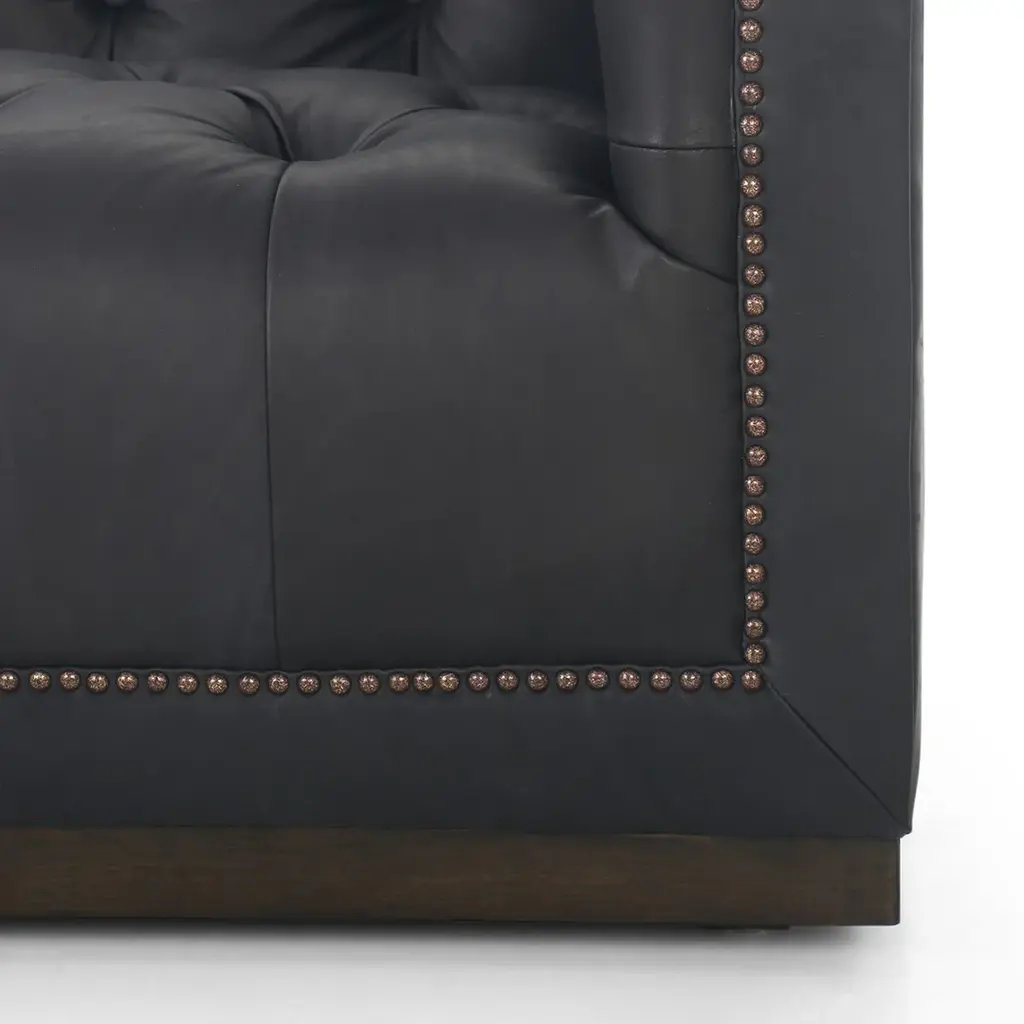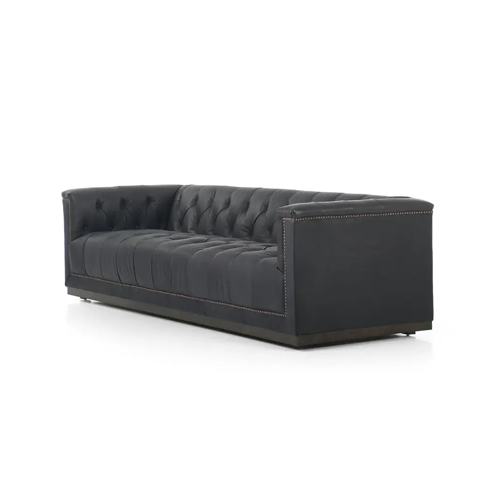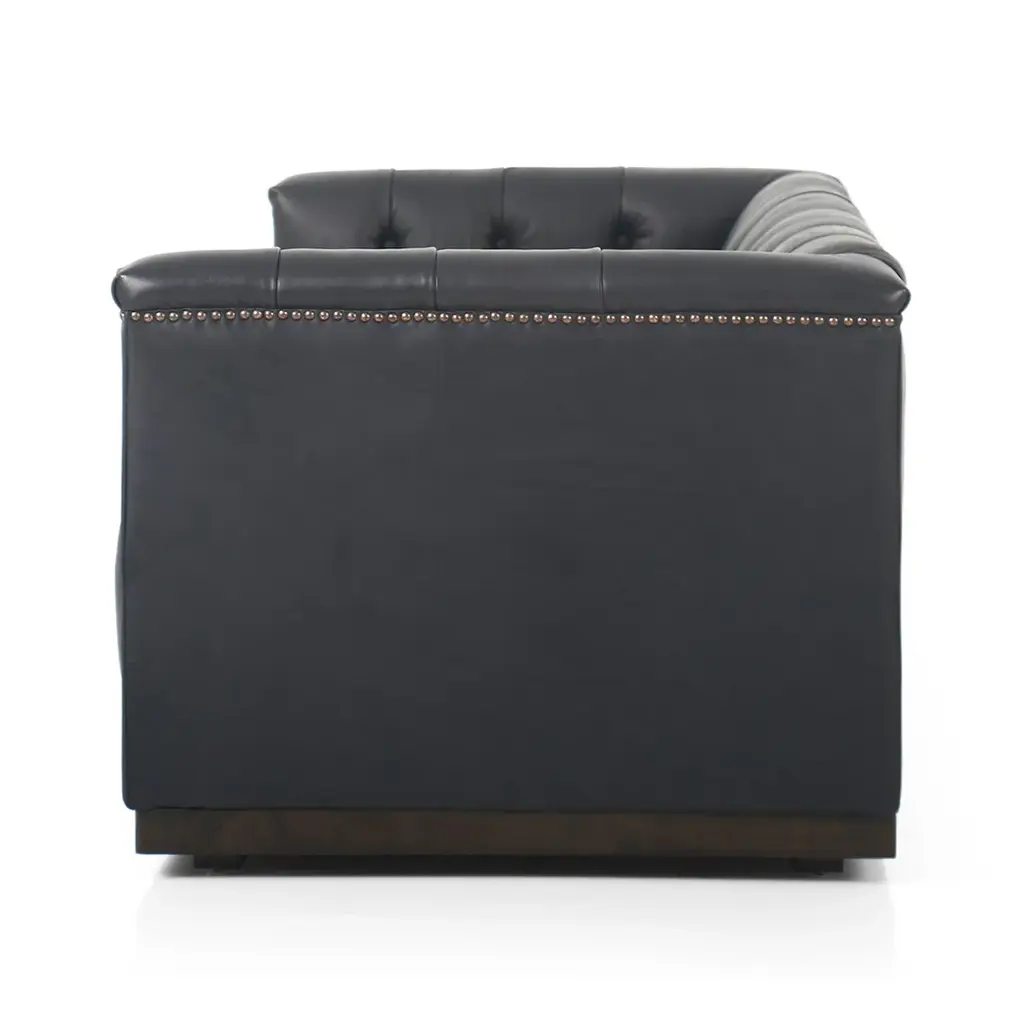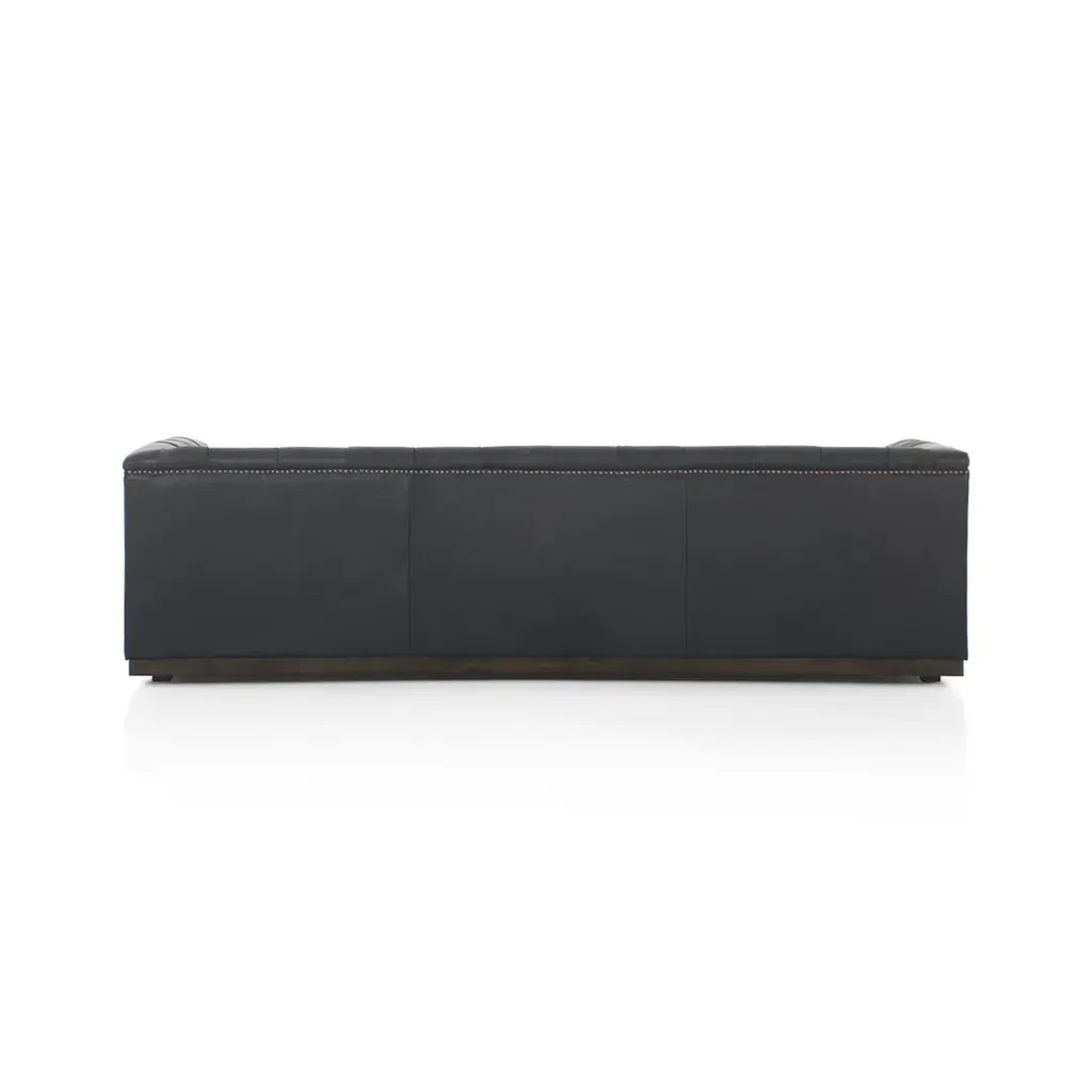 This creative take on the classic library sofa is covered in a slightly distressed top-grain leather and mounted on a solid wood base. Aged bronze nailheads add modernity. Finished with a specially designed formula that creates intentional cracking and distressing for a naturally aged look. In Stock Mid January 2026 In Stock Mid December Ships In 10-14 Business Days Aged bronze nailhead trim Top grain leather This image is for illustrative purposes only. The colors shown are accurate within the constraints of lighting, photography, and the color accuracy of your screen.