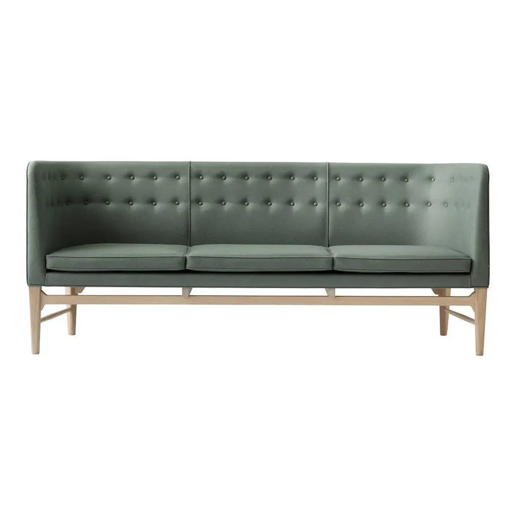 MAYOR shows a moderation of modernism and a unique regional adaptation: the frame is made of solid oak, the upholstery is tight but with three loose cushions that comprise the seating area, and there is generally a more human approach to modernism with a focus on livability. The sofa is made of high quality materials. The tight upholstery and the two rows of elegant buttons that extend over the armrests and back give the sofa a simple and stylish look. Thus the sofa fits perfectly into both modern homes and workplaces, where quality and design are important parameters.