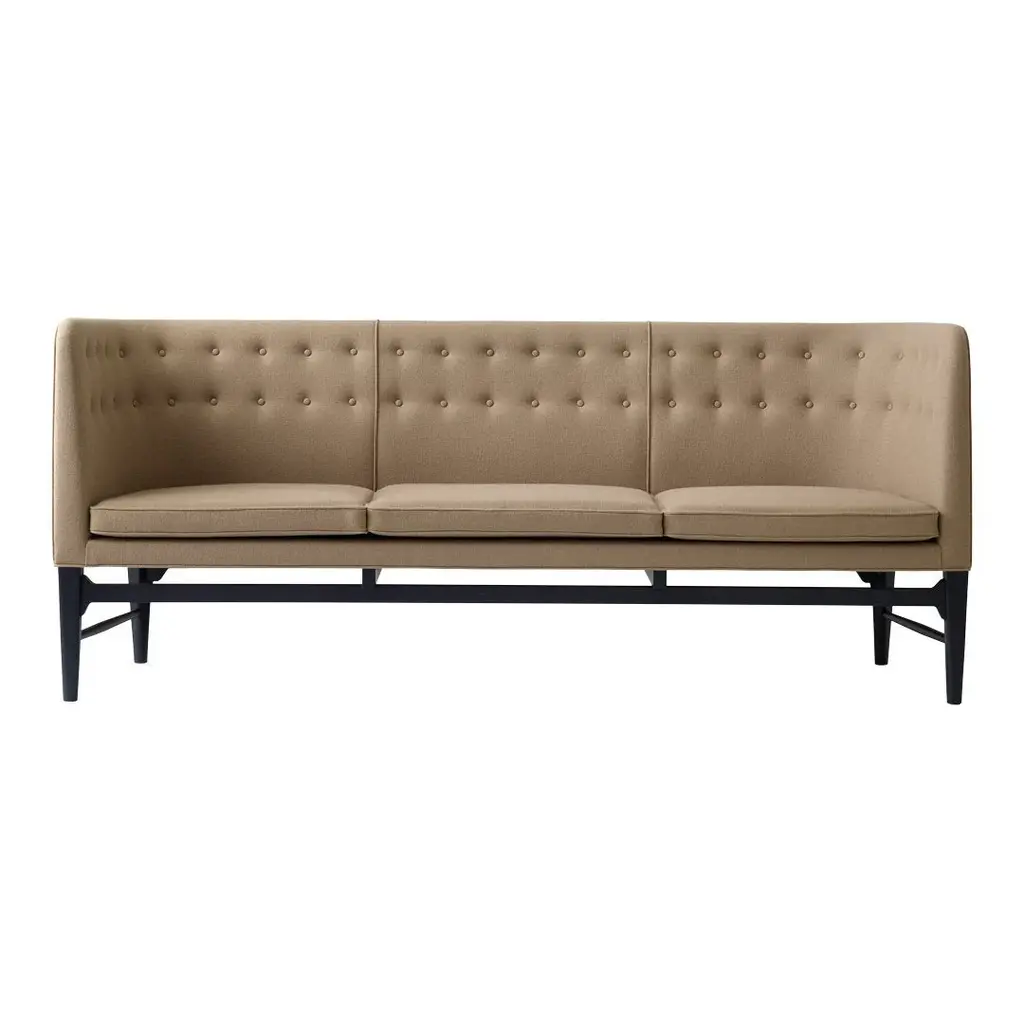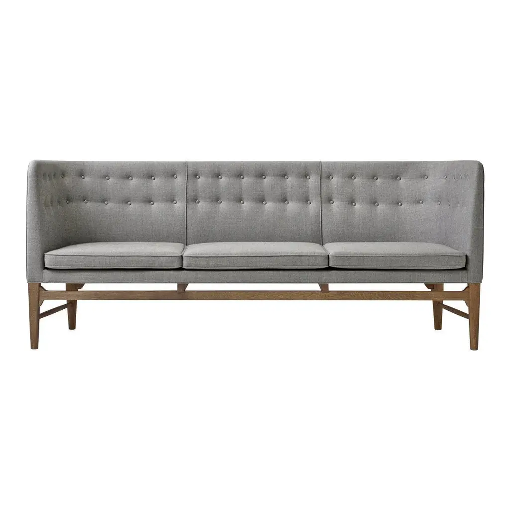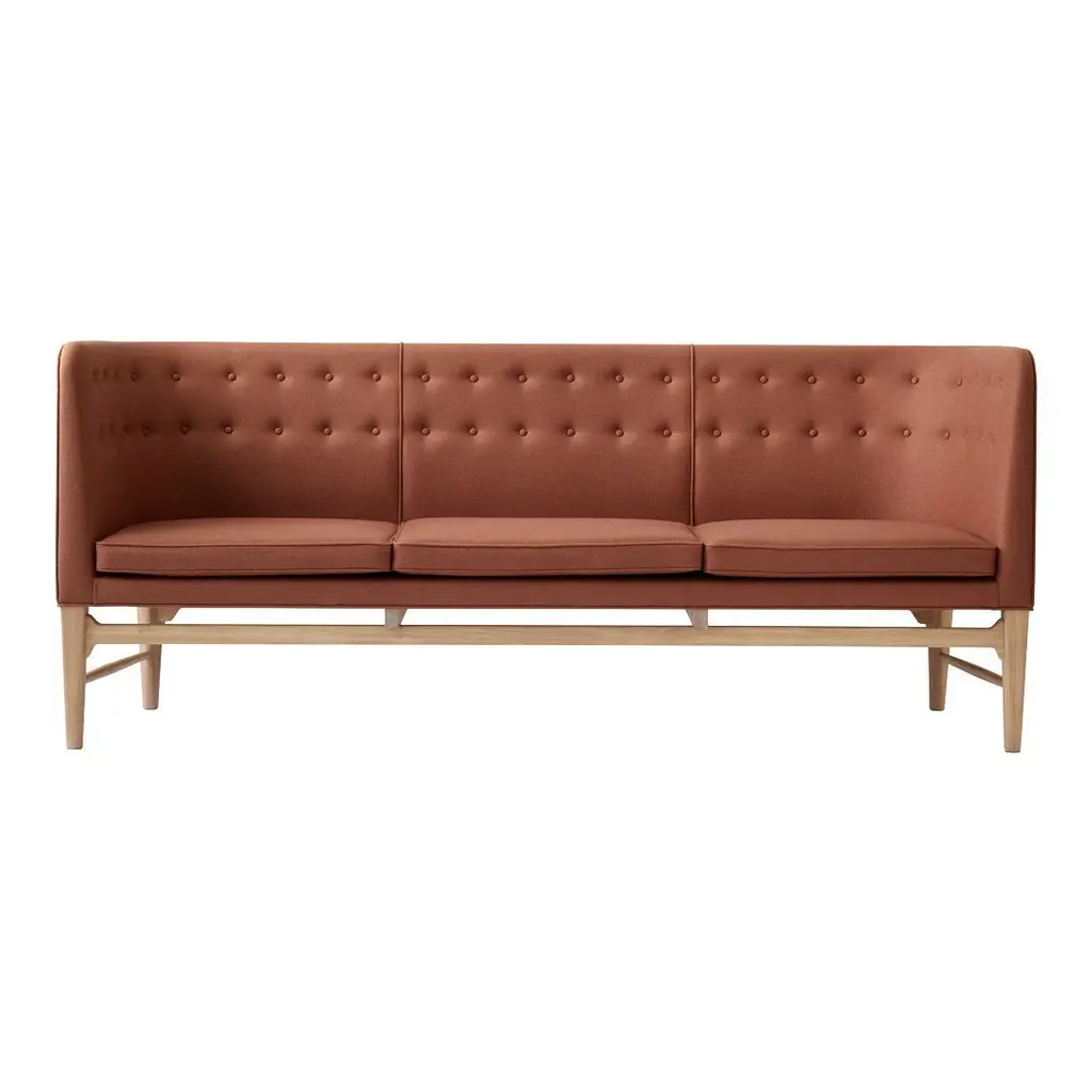 MAYOR shows a moderation of modernism and a unique regional adaptation: the frame is made of solid oak, the upholstery is tight but with three loose cushions that comprise the seating area, and there is generally a more human approach to modernism with a focus on livability. The sofa is made of high quality materials. The tight upholstery and the two rows of elegant buttons that extend over the armrests and back give the sofa a simple and stylish look. Thus the sofa fits perfectly into both modern homes and workplaces, where quality and design are important parameters.