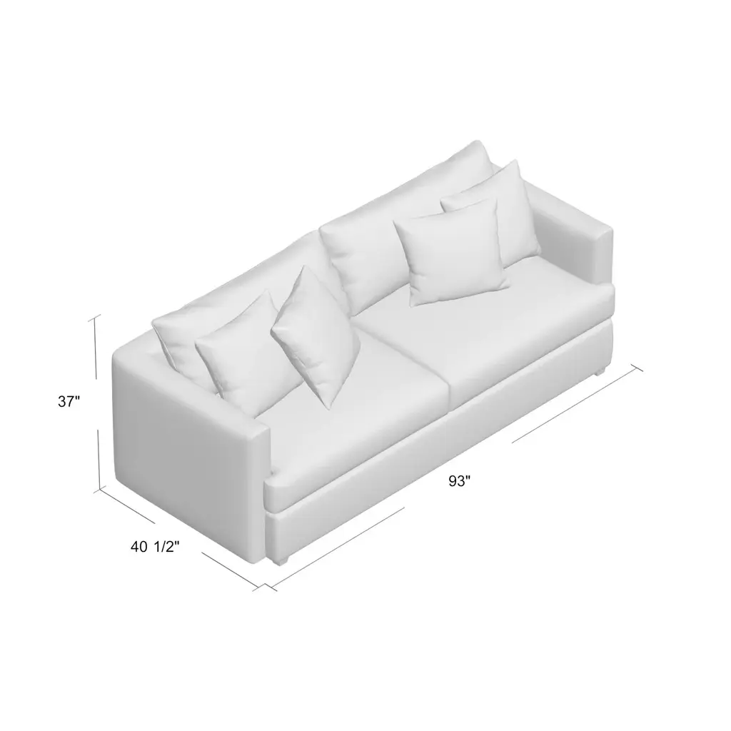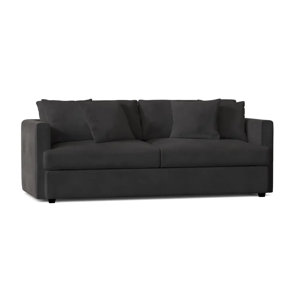 About This Product This sofa features clean lines and a tuxedo-inspired silhouette along with linen toss pillows included for extra layers of cushioning. It has a solid and engineered wood frame that rests on low-profile black plastic legs. This couch is also filled with foam and sinuous springs to provide plenty of support as you stretch out and relax after a long day. What's Included? 4 Toss Pillow(s)
