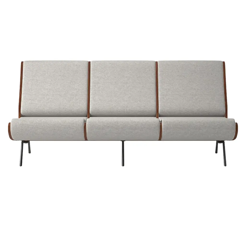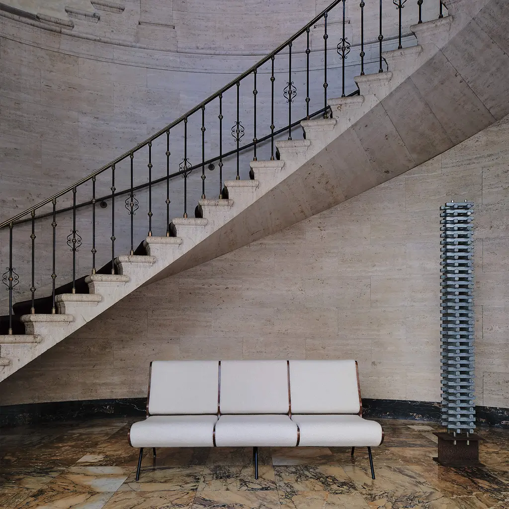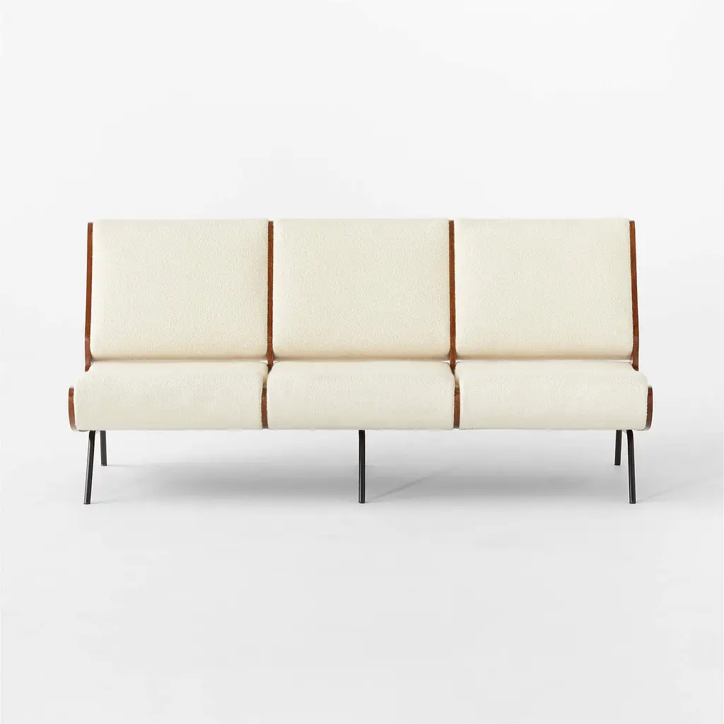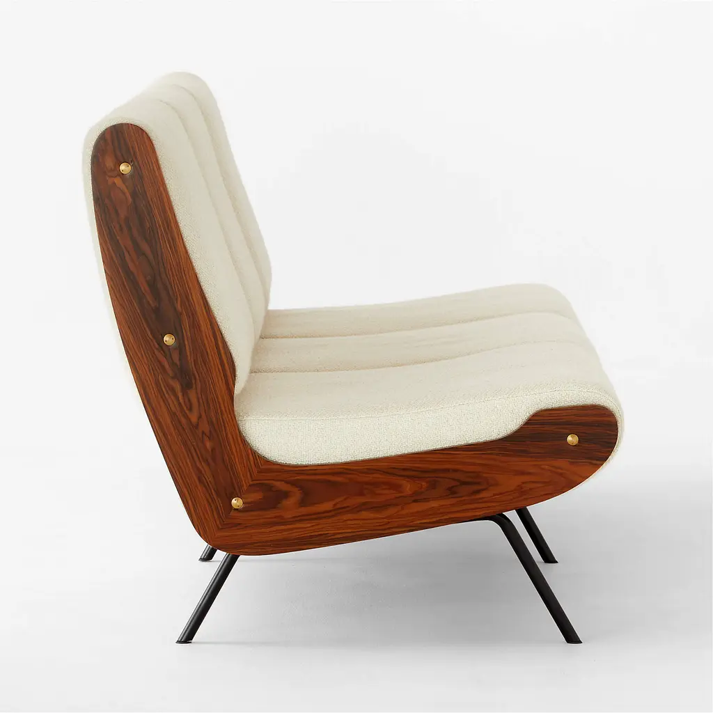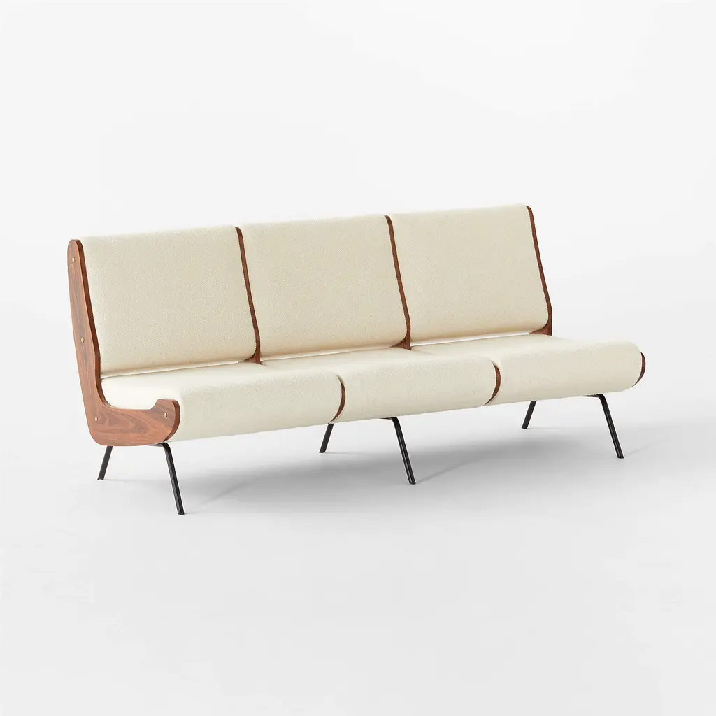 Designed early in Gianfranco Frattini's career, this streamlined armless sofa evokes the poetic minimalism of 1950s modernism. The now-iconic Italian design has been updated for contemporary audiences. Structurally held together by exquisite walnut side panels, the geometry is true to the original—down to the brass snake-eye bolts. Meant to be read from the side, its full beauty becomes apparent in profile. Called Model 836 at the time of its debut, the sofa received a mention at the prestigious Compasso d'Oro awards in 1955 and remains a noteworthy choice today. CB2 exclusive.