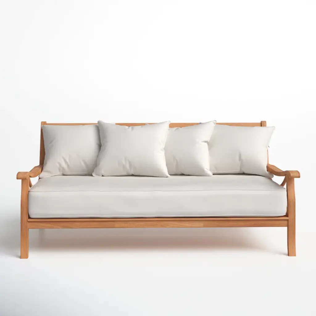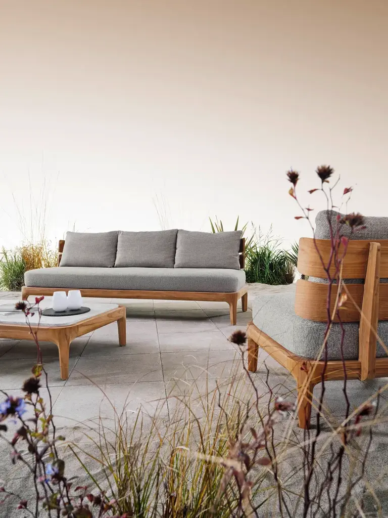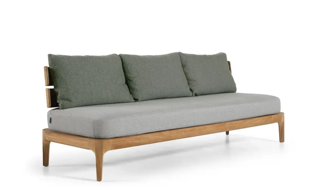 Three seater, teak frame, cushions with removable cover.Mediterraneo by Francesco Meda is an elegant expression of living products that captures the beauty of timeless furniture. Each piece is characterised by a Teak frame that has been skilfully treated to give an essential, simple and extraordinarily natural touch. An apparent contrast between the sturdy solidity of the wood and the generous stuffing of the seats is revealed in a harmonious balance in which the curved and rounded teak gives off a feeling of incredible softness, as do the prominent seat pillows. The seats, characterised by an enveloping backrest that seems to embrace those who sit on them, amplify an experience of comfort. Francesco Meda's distinctive signature emerges in every detail, blending functionality with the aesthetics of the wood, pillows and marble used on the tables.The Gervasoni Outdoor collection is the result of a careful selection of natural and technical materials worked with skillful craftsmanship and innovative technologies. The company’s products adapt to different styles of outdoor living, furnishing – with absolute ease, elegance and free customisation – terraces, gardens or swimming pools, from the most urban and contemporary to the most sophisticated or surrounded by nature. Each place has its own unique character that must be respected and enhanced. The key features of the range are, as always, attention to detail, excellent workmanship and in-depth research into materials.
