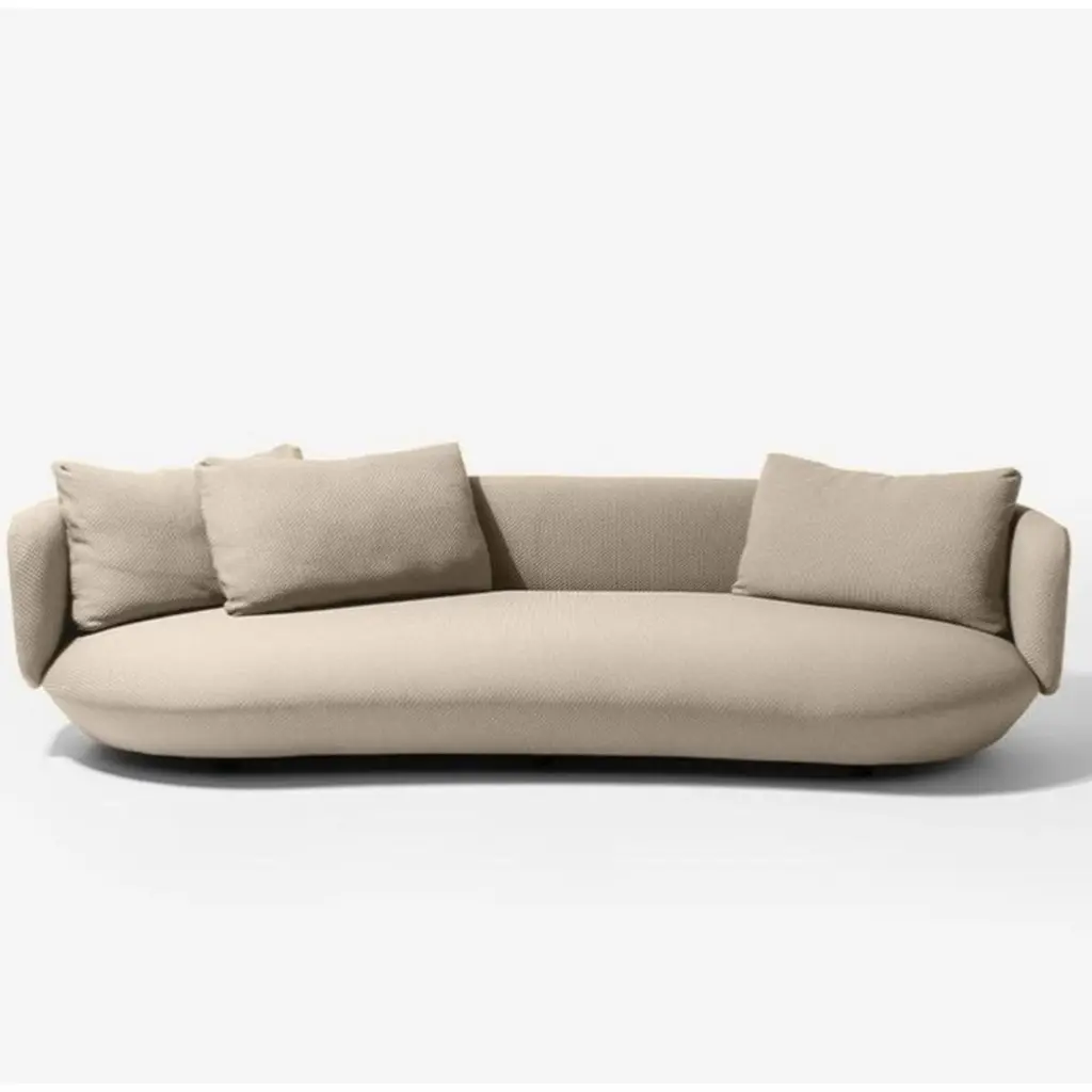 Medium Baixo Sofa by WentzDimensions: D 110 x W 250 x H 58 cmMaterials: Wood, Upholstery.3 cushions includedThe Baixo sofa proposes a different way of sitting. An invitation to casual comfort, closer to the ground. The organic structure is highlighted by the coating with exclusiveWE— KNIT technology — 3D mesh made from recycled PET — which allows the purity of shapes through a seamless surface.Upholstered sofa with wooden structure, multi-laminate, elastic straps and foam. Exclusive WE–KNIT coating (100% Recycled PET). Feet in solid wood with matte black paint. They come with cushions with the same finish as the sofa.WENTZSILENT AND NATURAL LIVING DESIGNED IN BRAZILBrazilian brand of furniture, lighting and accessories design.We live in silence, contemplating the environments, through pieces that welcome well-being. We seek to give naturalness to living, with harmonic and sensorial simplicities. We express Brazilian uniqueness through our lines, highlighting local materials and technologies.With a contemporary tropical aesthetic, designer Guilherme Wentz's creations reflect the contemplative personality of their creator, connected to nature and obsessed with design. His designs present a new look at living, where each piece conveys a perfect balance between simplicity and functionality.1987 — Guilherme Wentz is born on July 17, in the city of Caxias do Sul, in Rio Grande do Sul, where he spent his entire youth.2008 — Guilherme drops out of the Business Administration course to start a new creative life studying Product Design.2010 — Begins his career as a designer at the Riva objects brand, where he works for two years.2012 — Recently graduated, receives the IDEA Brasil award for his first product on the market, the Officer desk, developed for the São Paulo brand Decameron.2013 — Receives the iF Design Award for his second signed project, the K for Riva Collection, sets up his studio and starts designing for different brands of furniture, lamps and objects.2014 — Moves the studio to São Paulo, takes on the Style Directorship of the Decameron and Carbono brands and is invited to a project commissioned by the São Paulo Museum of Modern Art.2016 — Joins businessman Rafael Gehrke to launch his first independent collection, called "Capítulo 1", which in its first year was already available in some of the main designer stores in Brazil and the United States. In the same year he was named "Rising Talent" by Maison & Objet Americas and received the Museu da Casa Brasileira and iF Design Awards, both for Luminária UM, developed for Lumini.2017 — Named "Rising Talent" at the Casa Vogue Awards. One of his projects, the Post-Tropical Vase , is acquired for the permanent collection of the Lisbon Design and Fashion Museum.2018 — Wentz is named by the New York Times T Magazine as one of the "6 Rising Studios of the Americas."2019 — The WENTZ brand is established for the production and distribution of independent collections and the launch takes place during New York Design Week. In August, the brand's first store opens in São Paulo.