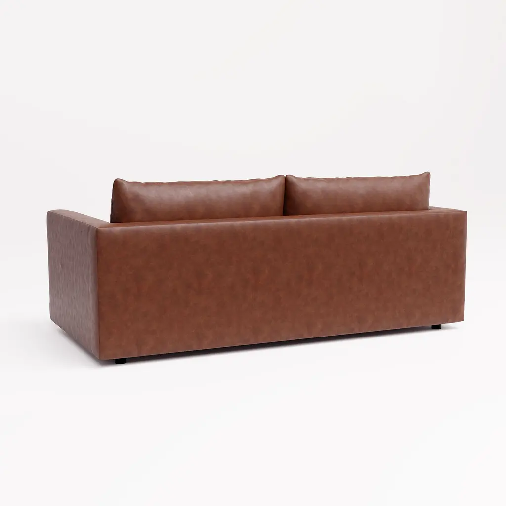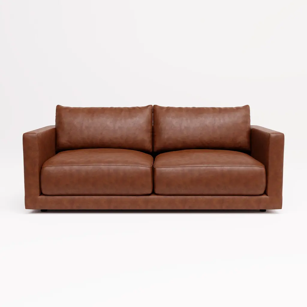 Slim base stylishly frames thick, sink-right-in cushions. Add on an ottoman and it's an instant sectional. Covered in your choice of luxe leather. Choose the width that's best for your space.