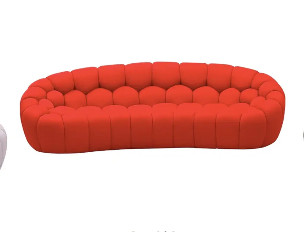 Presenting the "Mellow" sofa, an exquisite creation that embodies the essence of modern design and artistic flair. This extraordinary sofa boasts a distinctive silhouette, featuring a rounded, bubble-like shape that envelops you in its embrace. The design showcases a seamless blend of bold curves and sleek lines, creating an eye-catching centerpiece for any contemporary living. Mellow sofa comes in three captivating fabric options to suit your personal taste and interior decor. The first is a sophisticated light grey fabric, exuding elegance and versatility. It complements a wide range of color schemes, creating a harmonious ambiance. For those seeking a vibrant pop of color, the Fantasy sofa also comes in a stunning red fabric. This bold choice injects energy and personality into the room, making a statement that demands attention. Alternatively, the Mellow sofa is available in a captivating green fabric, evoking a sense of tranquility and harmony. This refreshing option brings a touch of nature indoors, infusing your space with a serene and inviting atmosphere. With its plush upholstery and ergonomic design, the sofa offers unrivaled comfort and relaxation. Sink into its soft cushions and experience a haven of coziness, where you can unwind and rejuvenate after a long day. The Mellow sofa's attention to detail extends beyond its aesthetics. Built with high-quality materials and expert craftsmanship, it ensures durability and longevity, making it a cherished piece for years to come. Elevate your living space with Bubble2 sofa, where modern design and comfort converge. Its captivating form and delightful color choices create an enchanting ambiance, transforming your room into a sanctuary of style and sophistication.