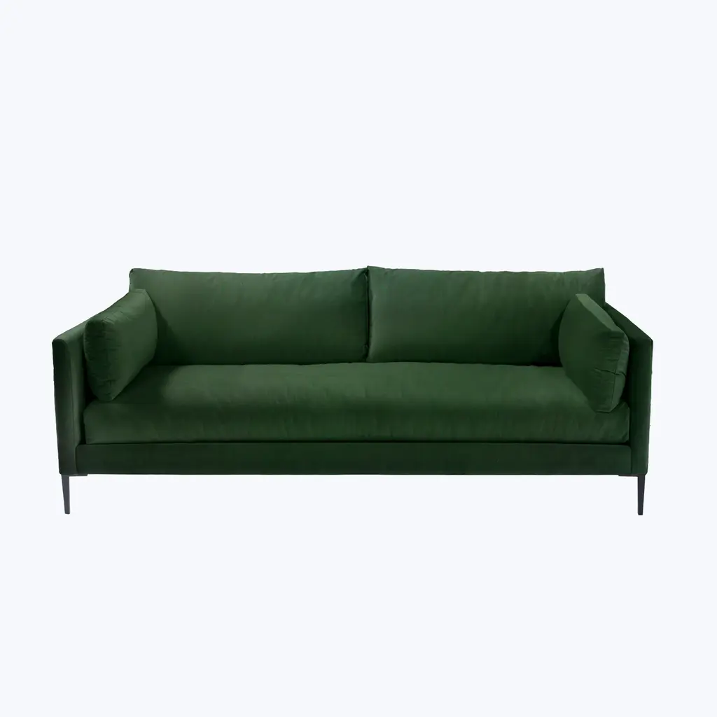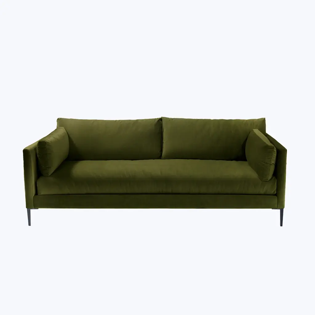 Discover the Mercer Sofa by Bond Street. Combining clean lines and crisp tailoring with loose back pillows, a wide seat, and plush upholstery, the Mercer beautifully balances softness and modern edge. A sophisticated piece, perfect for refined contemporary living spaces. Try it in a living room or home office. The Mercer is handcrafted in sustainable FSC®-certified wood and upholstered in luxurious cotton velvet. Made in the USA exclusively for abc. Customizable in-store in a wide range of colors.