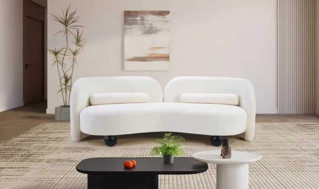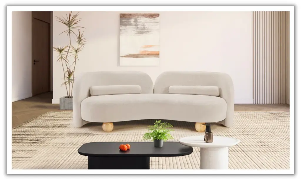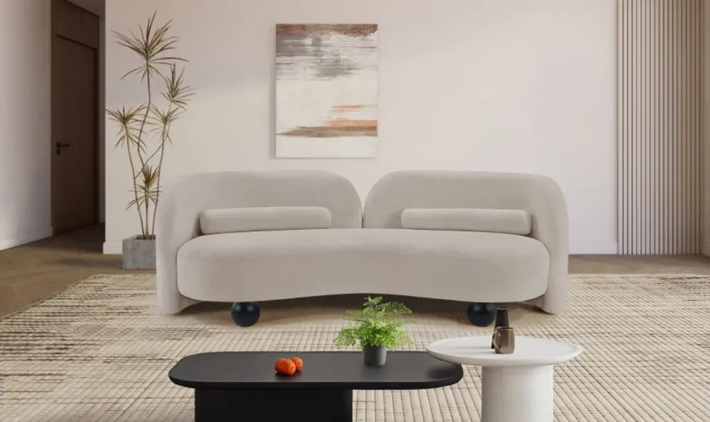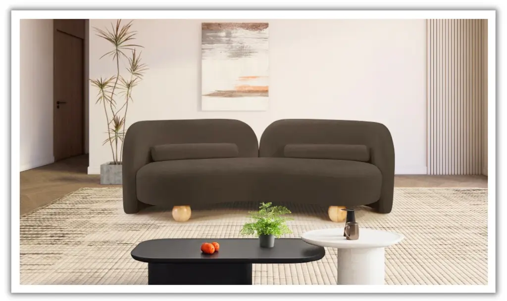 The Meridian Furniture Daphne Chenille Fabric Upholstered Sofa brings a refined softness to any living space with its plush, cloud-like chenille fabric. Designed for comfort and ease, its gently curved frame supports a relaxed sitting posture while maintaining a minimalist aesthetic. The deep seat and overstuffed cushioning make it an inviting place to settle in, whether you're reading, resting, or entertaining guests. Its sculptural silhouette adds quiet elegance without overwhelming the room. Available with your choice of black or natural wooden legs, the Daphne sofa is easy to integrate into a range of interior styles—from clean contemporary to warm transitional. Built with both form and function in mind, this piece blends tactile comfort with visual calm.
