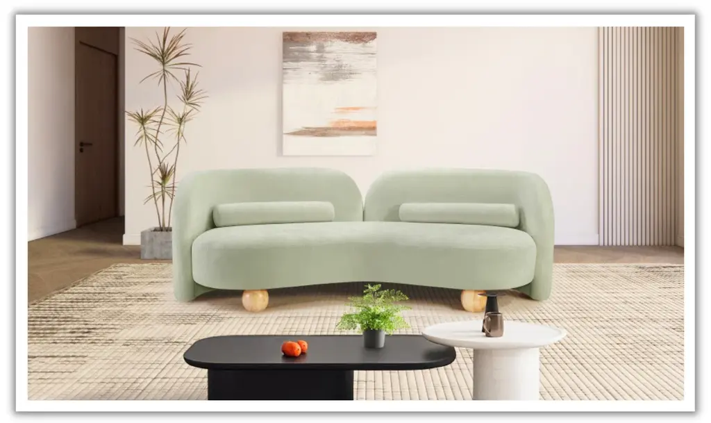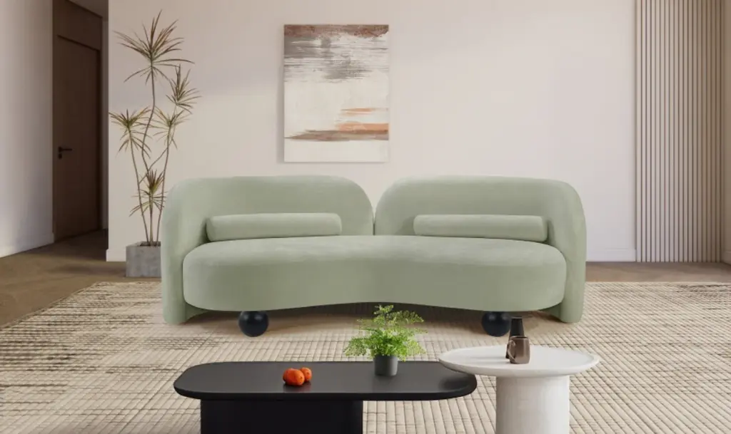 The Meridian Furniture Daphne Chenille Fabric Upholstered Sofa brings a refined softness to any living space with its plush, cloud-like chenille fabric. Designed for comfort and ease, its gently curved frame supports a relaxed sitting posture while maintaining a minimalist aesthetic. The deep seat and overstuffed cushioning make it an inviting place to settle in, whether you're reading, resting, or entertaining guests. Its sculptural silhouette adds quiet elegance without overwhelming the room. Available with your choice of black or natural wooden legs, the Daphne sofa is easy to integrate into a range of interior styles—from clean contemporary to warm transitional. Built with both form and function in mind, this piece blends tactile comfort with visual calm.