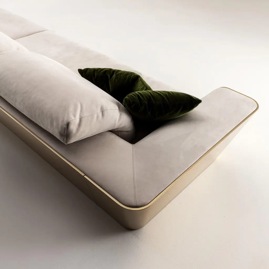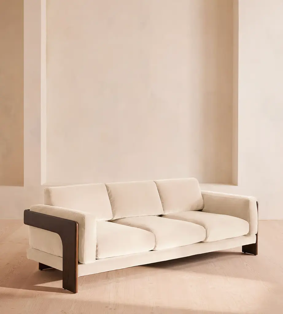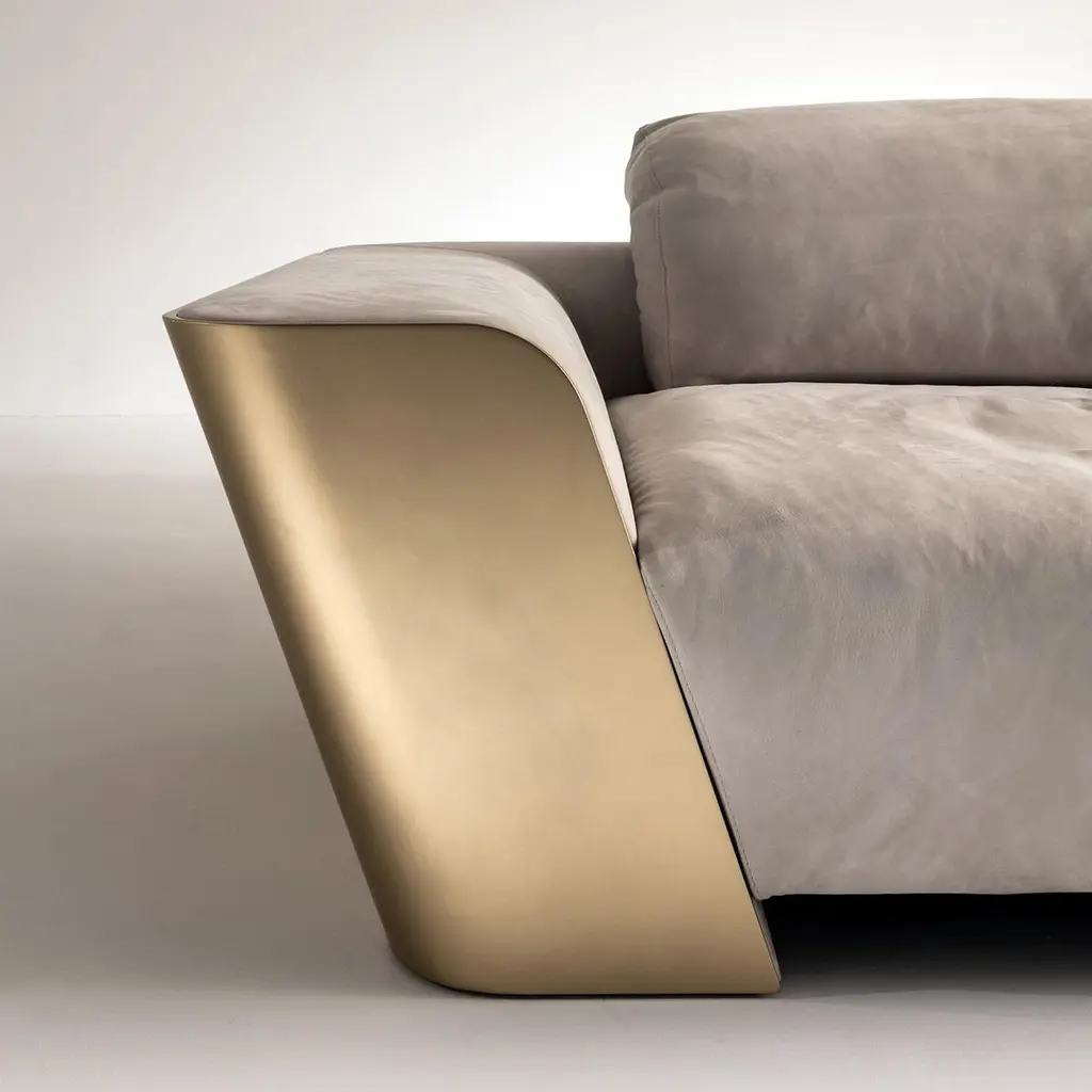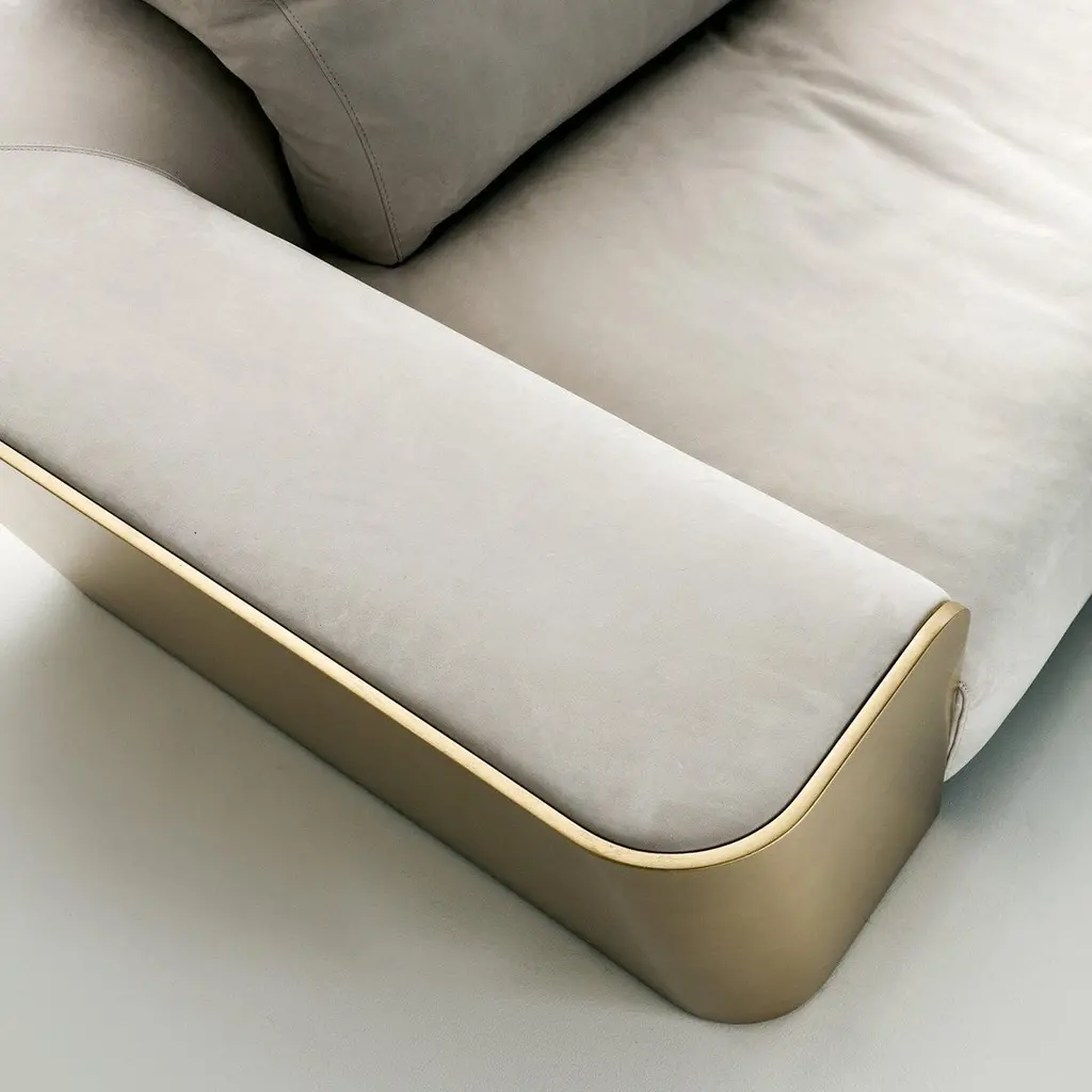 The stylish Metropol 3-seater sofa in nubuck leather features the distinctive element of wrapping the seats with the back and side shell in brushed matt lacquered wood, providing a highly aesthetic appeal. The quality padding is upholstered in a choice of nubuck leather, fabric or velvet, offering a luxurious feeling of welcoming comfort.