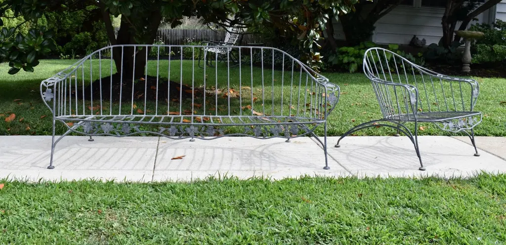 Mid 20th Century Wrought Iron Sofa Dogwood Form