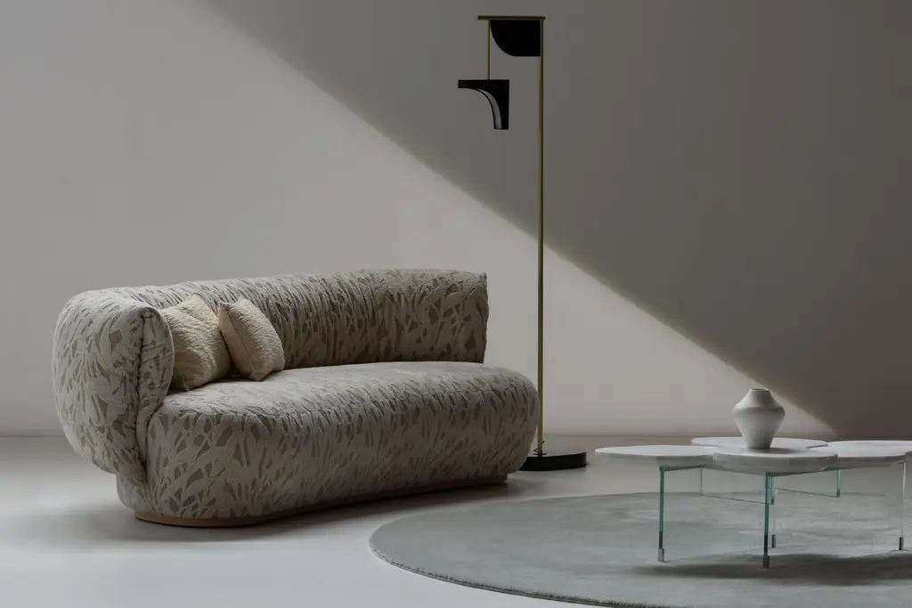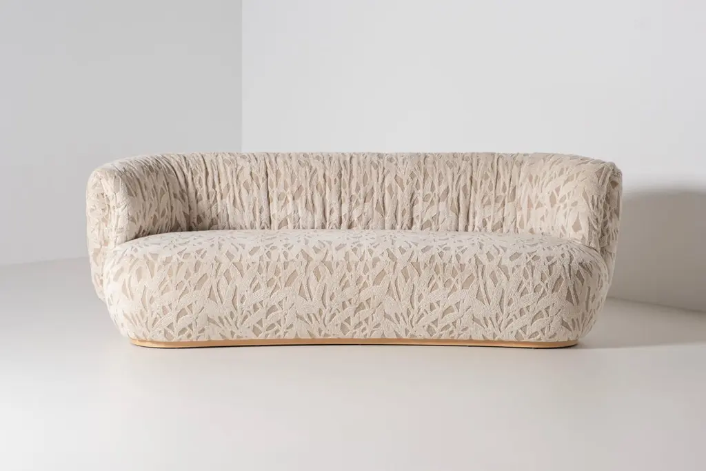 Mid-Century Modern Bolota Sofa, Contemporary Collection, Handcrafted in Portugal - Europe by Greenapple.The Bolota curved sofa captures the organic beauty of nature, taking inspiration from a dewdrop resting delicately on a blade of grass. Its artistic form and plush upholstery create an inviting retreat, perfect for moments of pure relaxation. Designed to easily blend into contemporary interiors, the Bolota curved sofa embodies a balance of timeless craftsmanship and modern artistry.The Bolota sofa is upholstered in beige bouclé fabric. The fabric can be treated with a stain-resistant finish for added durability.Its structure is made from anti-fungal and vermin-free solid steamed beechwood and birch plywood, ensuring exceptional strength and stability. The sofa base is crafted in natural white American oak veneer with open-pore and matte varnish.The Bolota sofa can be customized in terms of dimensions, materials and finishes.Bolota 3-Seat Sofa MaterialsWD027 American Oak, Stained Open-pore, Varnished, Natural White Oak, MatteM104966 Bouclé, BeigeHandcrafted in Portugal - Europe by GreenappleUnique by design, Crafted by peopleGreenapple transforms contemporary spaces into exclusive narratives of design and craftsmanship. From custom-made furniture to bespoke interiors, each creation is a timeless work of art, shaped by master artisans who honor centuries-old techniques.Founded in 2005 by Sérgio Rebola and Rute Martins, Greenapple has earned global recognition among high-end clientele and leading design firms. While Rute designs each unique piece, Sérgio ensures uncompromising quality from design to production and from production to your home. We provide a seamless experience, offering short production lead times, worldwide delivery within 7 to 10 days, and white-glove service upon request.For U.S. clients, we can handle all customs clearance, cover duties, and offer white-glove service as well upon request.Couch, Sette