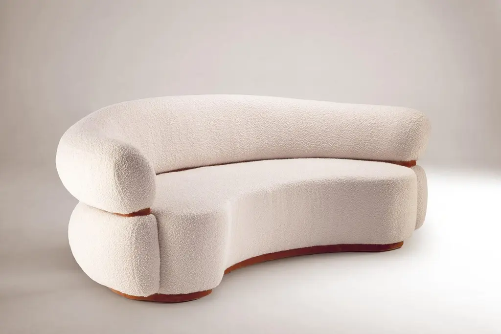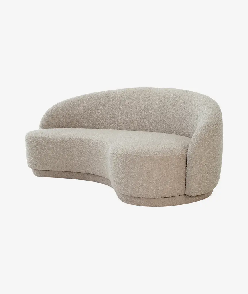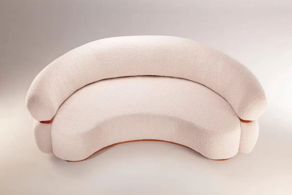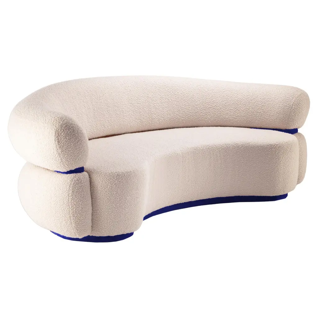 Like a warm embrace, Malibu Round Sofa welcomes you to stay within and relax. An elevated homage to the golden age of midcentury design and organic architecture, it radiates through its unusual proportions and strong curves with softness and Fine detailing resulting in a must-have piece.The Mid-Century Modern and Organic Modern inspirations are fused together elegantly in this statement piece of furniture.Its rich Bouclé fabric and Cotton Velvet detailing contribute to the characteristic and unique character of this luxurious Round Sofa, while adding to its comfort.Width 240 cm. Made to Order. Can be also made in width 200 cm.If you are planning on ordering an upholstery item with COM upholstery, please follow these instructions: - Let us know that you are shipping fabric to us prior to shipping, as we will need you to fill a form;- All fabrics must be shipped to the company DOOQ, LDA, and no other name;- Send us the fabric invoice so we can present it to portuguese customs so the fabric can be released;- Our company must appear on the fabric invoice as "SHIP TO" only, not as "BILL TO" or "SOLD TO"- Our company has the right to refuse acceptance of fabric/leather if the shipment of such material ignores the requirements written above;For sales with delivery address within European territories, VAT will be charged additionally to the stated price.