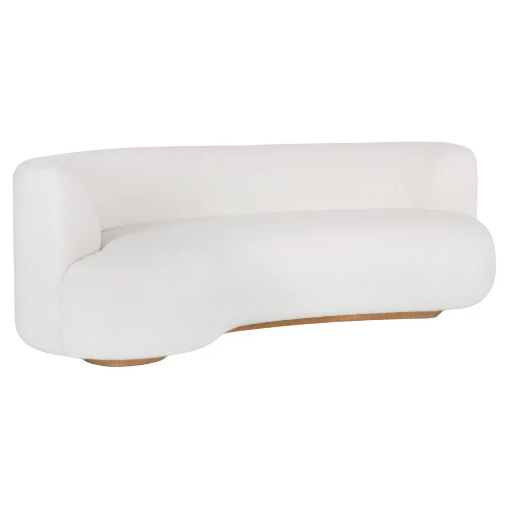 Mid-Century Modern Off-White Bouclé Malibu Round Sofa, Soft Cotton Velvet, W=240