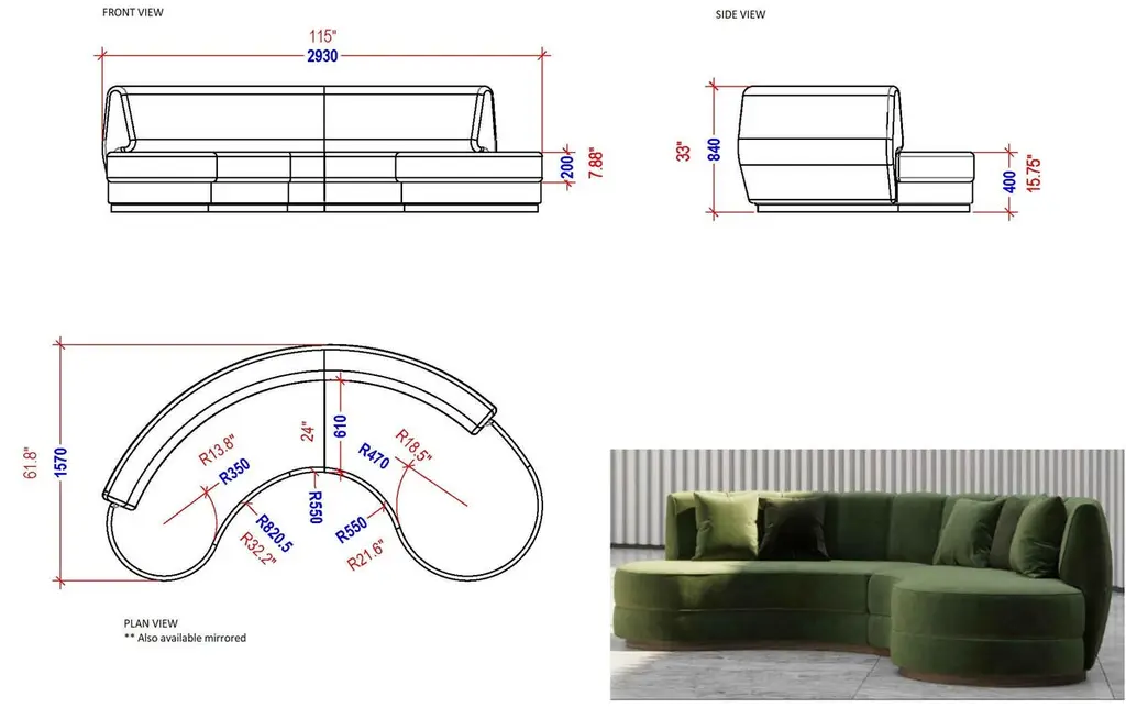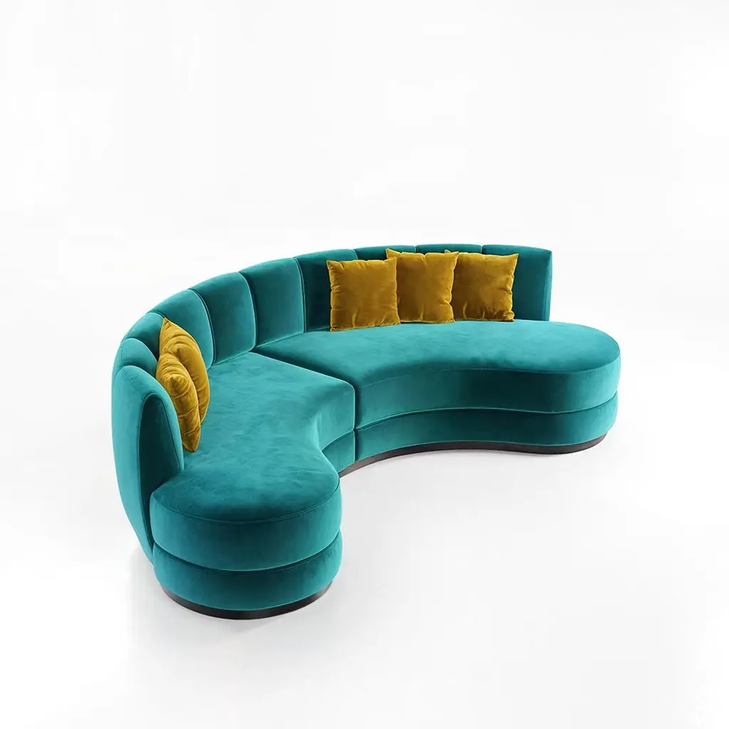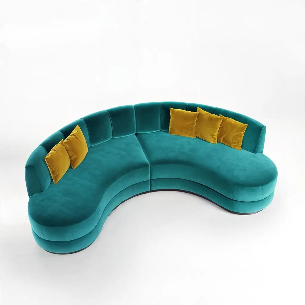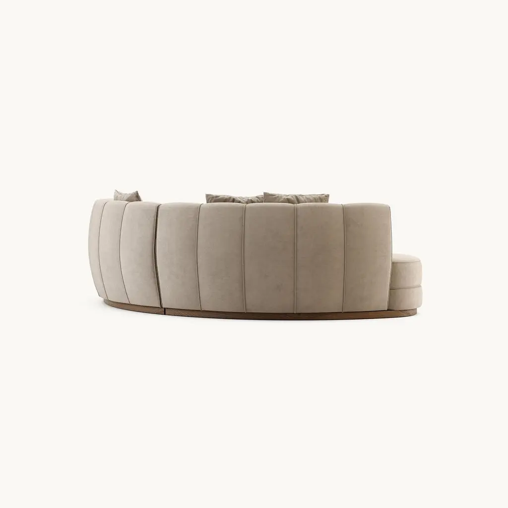 A sculptural interpretation of midcentury modern elegance, this curved sofa is upholstered in pink velvet that adds depth and style to any setting. The tailored silhouette features vertical channel detailing along the backrest and a smooth, triple-layered base that rests on a walnut-finished plinth. Generously padded cushions provide both structure and comfort, making it an ideal centerpiece for sophisticated interiors.This sofa is offered in a variety of velvet colors. The base can be in wood veneer is several colors, or in metal in different color polished or brushed stainless steel. See attached photos for color options. Note: Cushions are not included in the price but can be purchased separately.Finishes:Fabrics: Portofino FR 31Finishes: Matte Walnut Wood Veneer Base3 cushions included COM and COL are also available.Contact us to enquire about COM/COL production, requirements and material shipping instructions.Please contact us if you have any questions about customization and pricing. We will be glad to check with the factory’s technical team if sizes, finishes, and colors can be customized. We do our best to expedite production and to ship and deliver product within the listed lead time, however current lead times might be longer due to global shipping backlog and delays. These delays are out of our control and cannot be a reason to cancel an order.Our pricing includes all costs for international shipping to the U.S., as well as duties and customs clearance fees. Please be aware that local delivery within the U.S. is not included. We offer white glove, front door, and warehouse delivery options. For shipments outside the U.S., kindly reach out to us for a detailed quote.