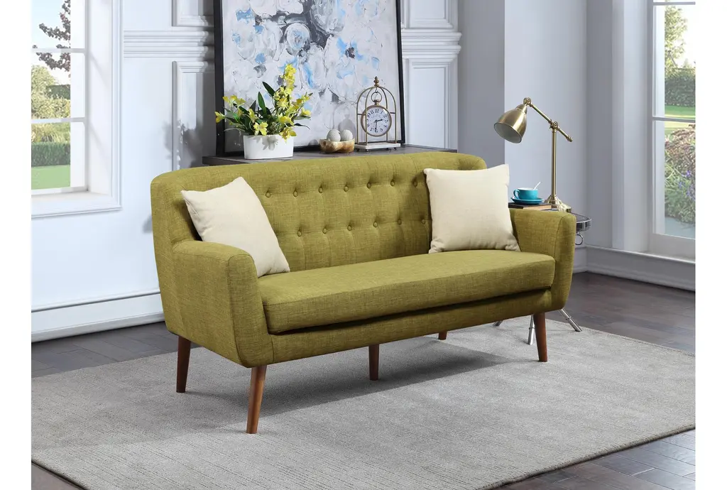 Mill Lane Mid-Century Modern Green Fabric 68” Tufted Sofa