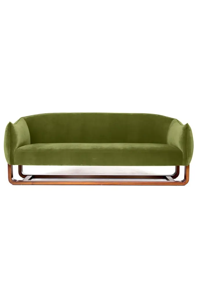Designer Marie Burgos has expanded on the design concept for her acclaimed Milo lounge chair and created the newly introduced Milo sofa. She uses a molded wooden frame to support the luxuriously comfortable seating that is covered in any of a wide selection of fabrics, including the red velvet shown here. The tailored contemporary style is designed to compliment room settings in virtually any style from traditional to minimalist modern.Structure: Handcrafted wooden frame Finish: Variety of Fabrics with leather handle.COM available.