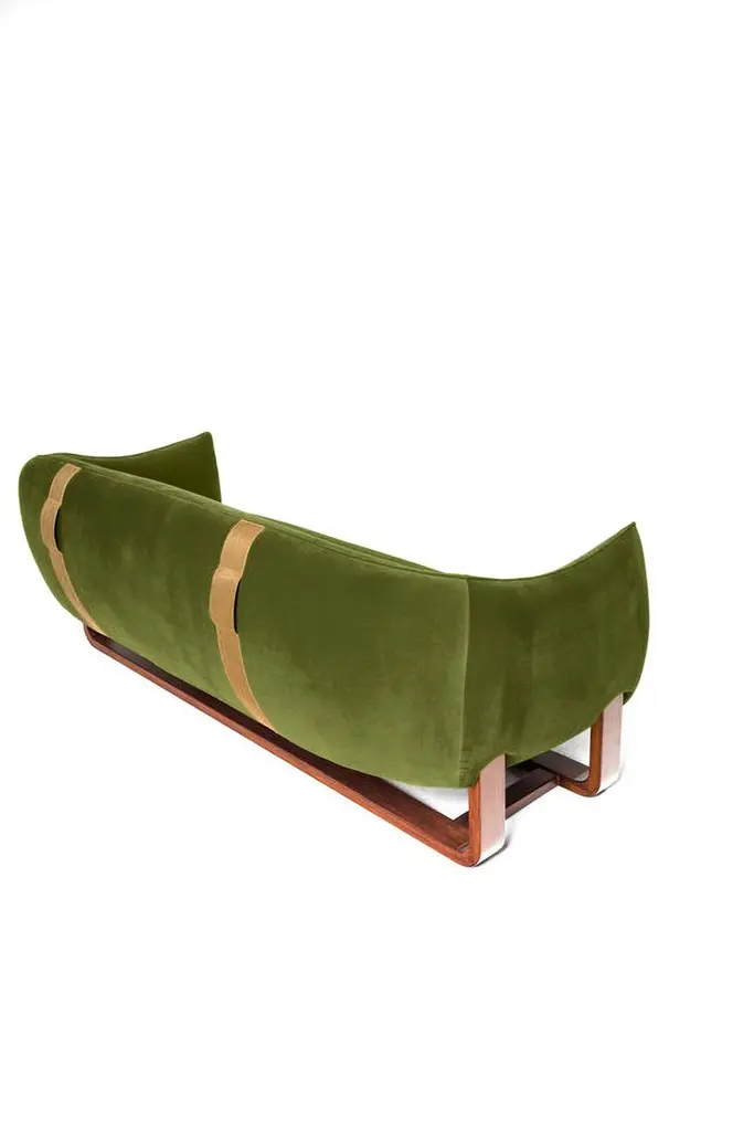 Designer Marie Burgos has expanded on the design concept for her acclaimed Milo lounge chair and created the newly introduced Milo sofa. She uses a molded wooden frame to support the luxuriously comfortable seating that is covered in any of a wide selection of fabrics, including the red velvet shown here. The tailored contemporary style is designed to compliment room settings in virtually any style from traditional to minimalist modern.Structure: Handcrafted wooden frame Finish: Variety of Fabrics with leather handle.COM available.