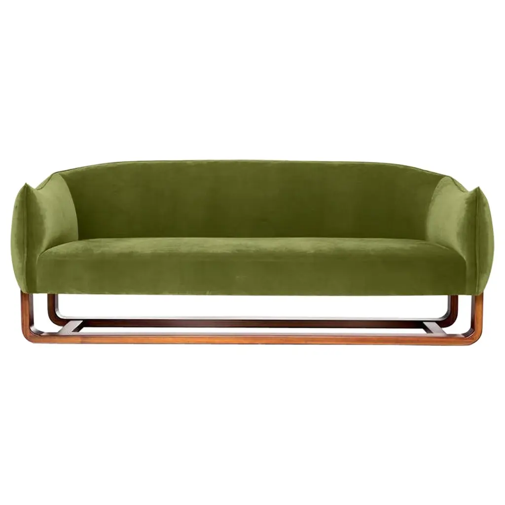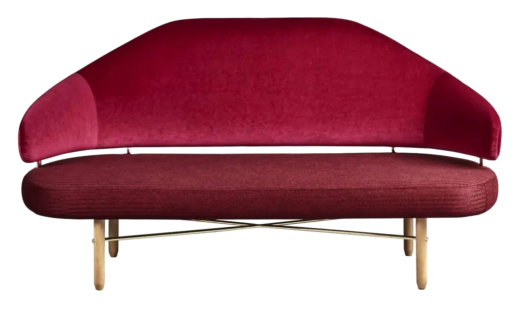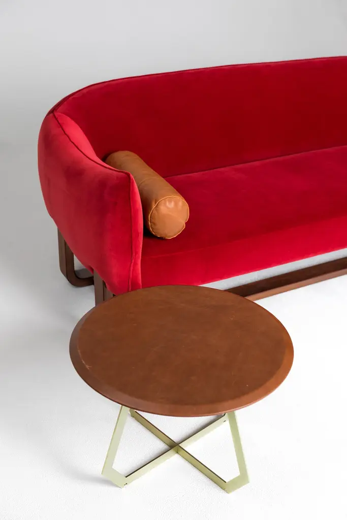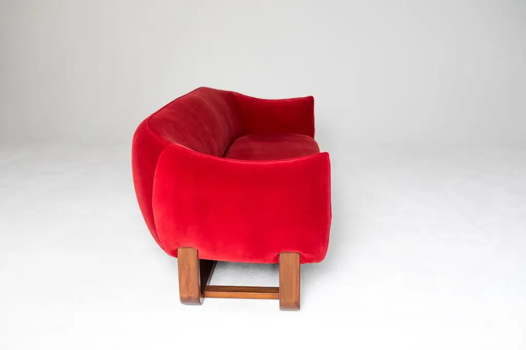 Designer Marie Burgos has expanded on the design concept for her acclaimed Milo lounge chair and created the newly introduced Milo sofa. She uses a molded wooden frame to support the luxuriously comfortable seating that is covered in any of a wide selection of fabrics, including the red velvet shown here. The tailored contemporary style is designed to compliment room settings in virtually any style from traditional to minimalist modern.Structure: Handcrafted wooden frame Finish: Variety of Fabrics with leather handle.COM available.