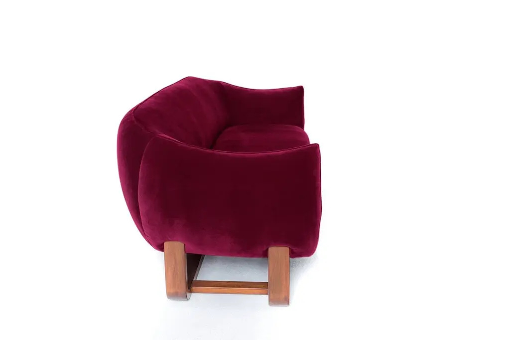 Designer Marie Burgos has expanded on the design concept for her acclaimed Milo lounge chair and created the newly introduced Milo sofa. She uses a molded wooden frame to support the luxuriously comfortable seating that is covered in any of a wide selection of fabrics, including the red velvet shown here. The tailored contemporary style is designed to compliment room settings in virtually any style from traditional to minimalist modern.Structure: Handcrafted wooden frame Finish: Variety of Fabrics with leather handle.COM available.
