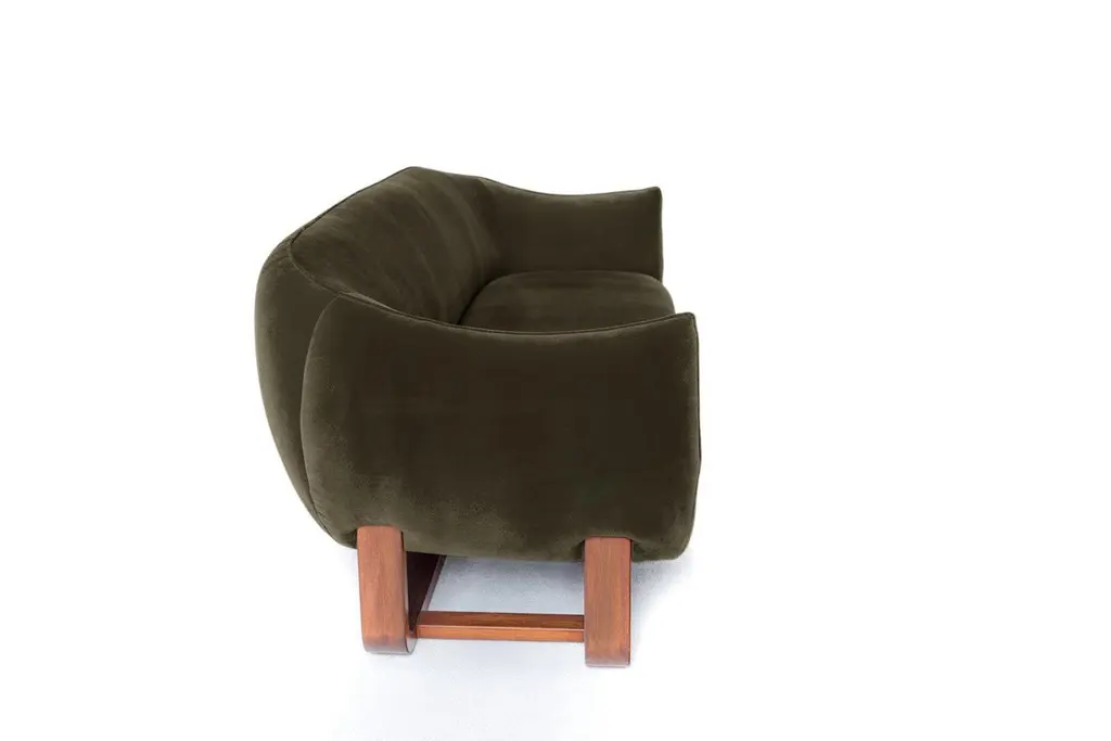Designer Marie Burgos has expanded on the design concept for her acclaimed Milo lounge chair and created the newly introduced Milo sofa. She uses a molded wooden frame to support the luxuriously comfortable seating that is covered in any of a wide selection of fabrics, including the red velvet shown here. The tailored contemporary style is designed to compliment room settings in virtually any style from traditional to minimalist modern.Structure: Handcrafted wooden frame Finish: Variety of Fabrics with leather handle.COM available.