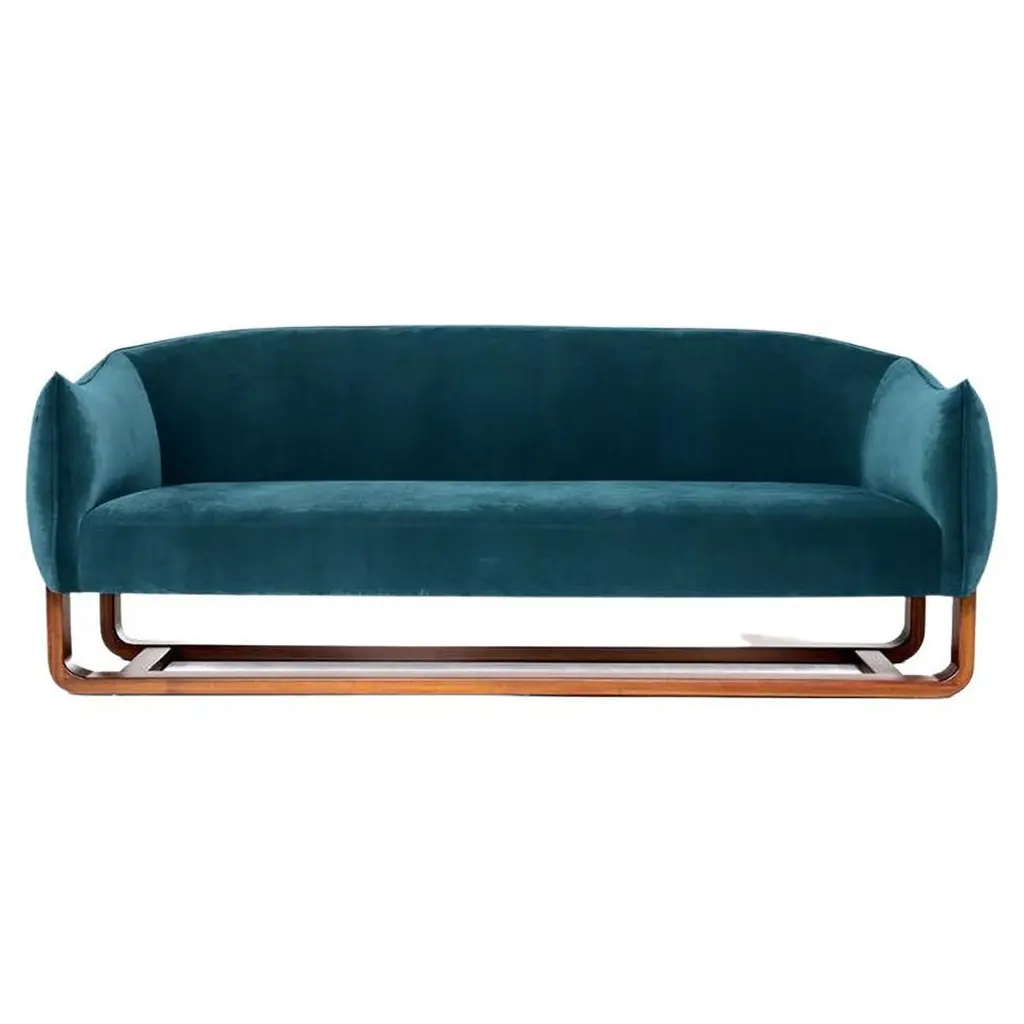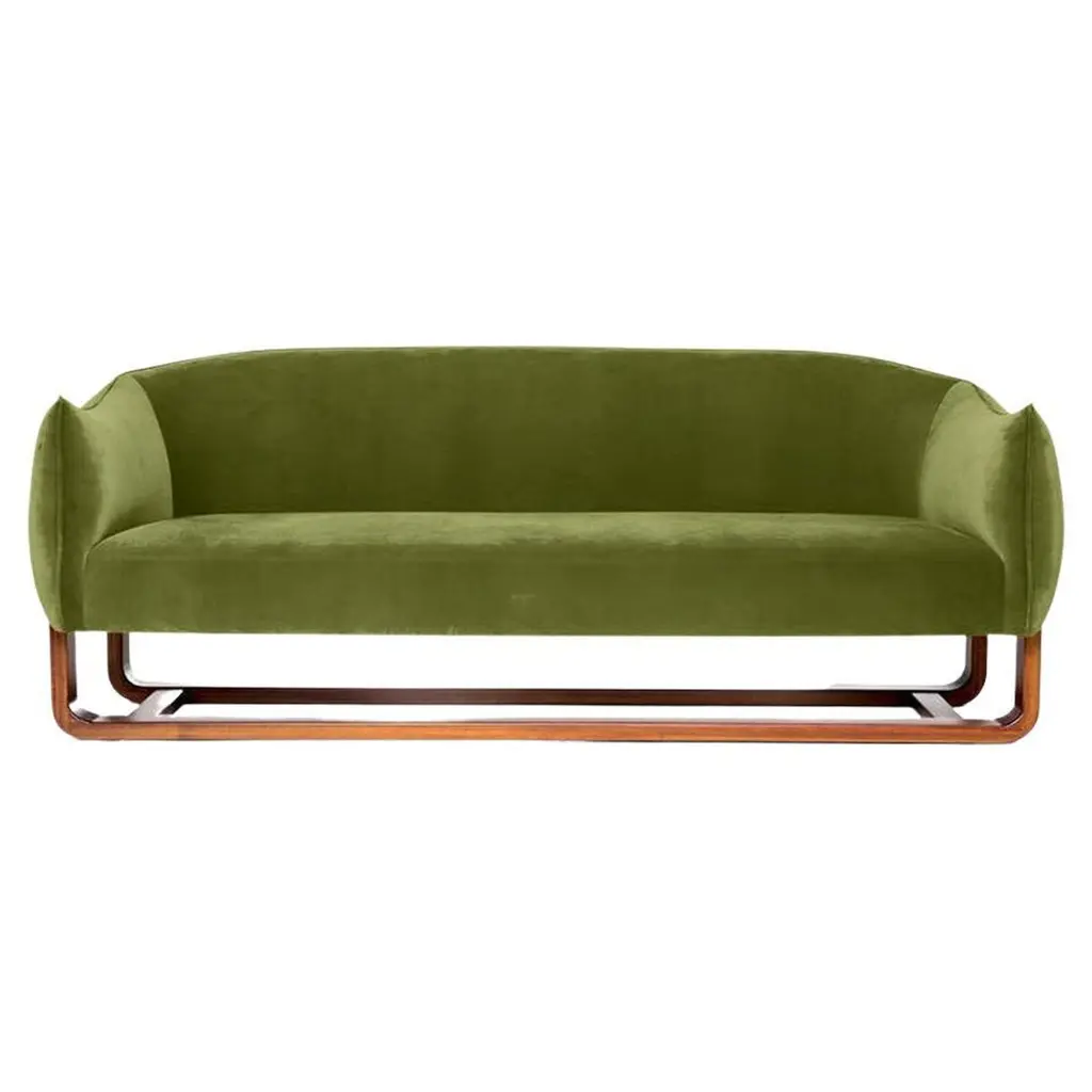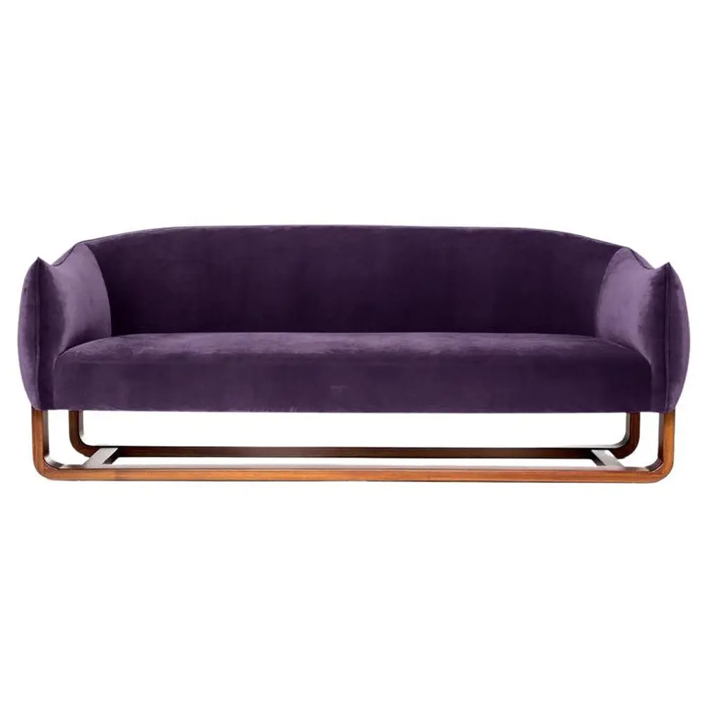 Designer Marie Burgos has expanded on the design concept for her acclaimed Milo lounge chair and created the newly introduced Milo sofa. She uses a molded wooden frame to support the luxuriously comfortable seating that is covered in any of a wide selection of fabrics, including the red velvet shown here. The tailored contemporary style is designed to compliment room settings in virtually any style from traditional to minimalist modern.Structure: Handcrafted wooden frame Finish: Variety of Fabrics with leather handle.COM available.
