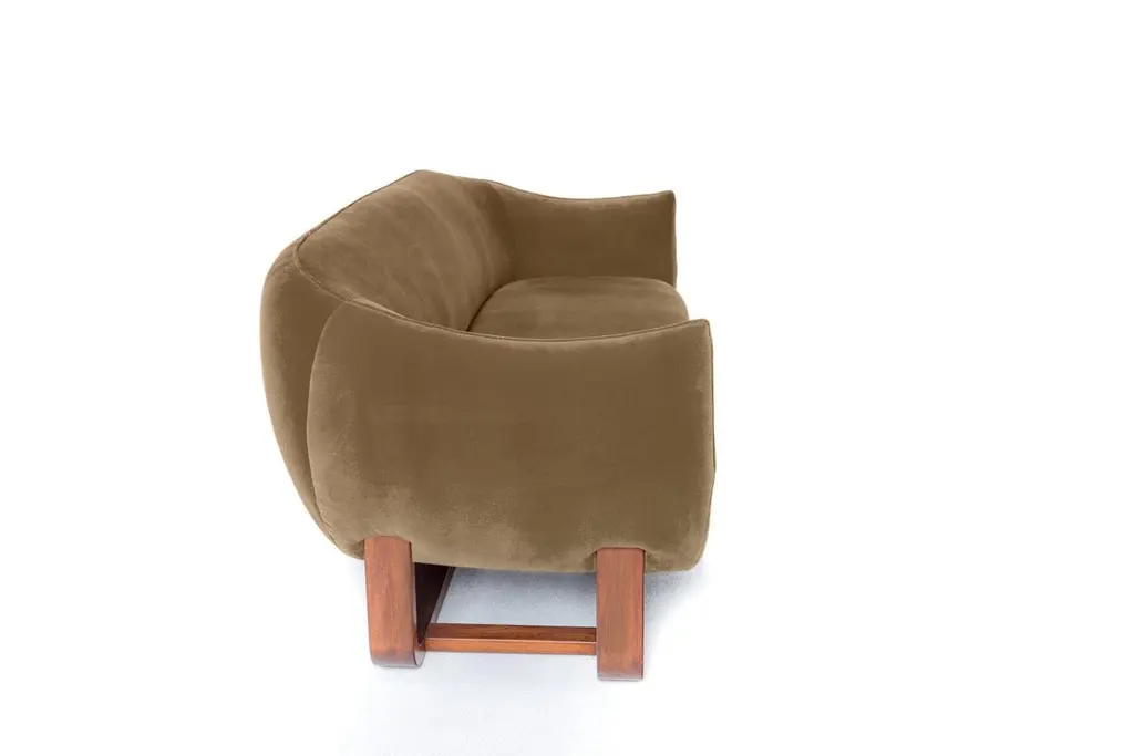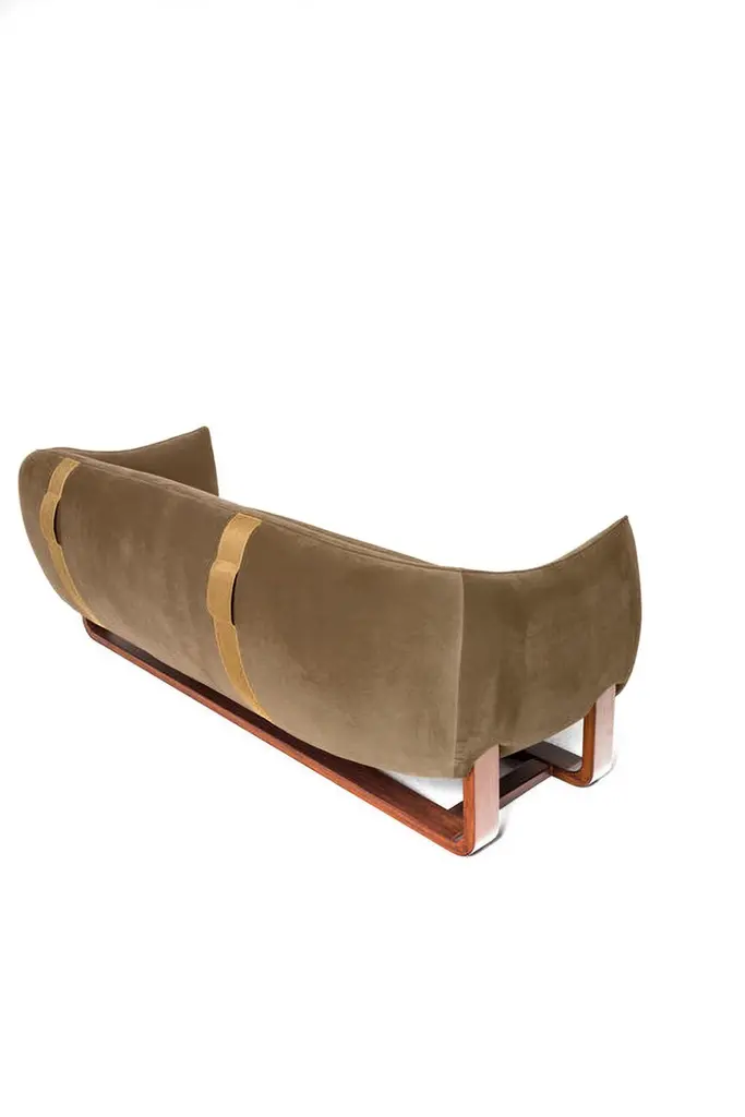 Designer Marie Burgos has expanded on the design concept for her acclaimed Milo lounge chair and created the newly introduced Milo sofa. She uses a molded wooden frame to support the luxuriously comfortable seating that is covered in any of a wide selection of fabrics, including the red velvet shown here. The tailored contemporary style is designed to compliment room settings in virtually any style from traditional to minimalist modern.Structure: Handcrafted wooden frame Finish: Variety of Fabrics with leather handle.COM available.