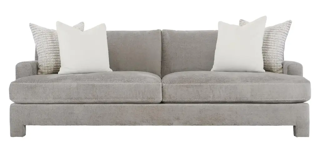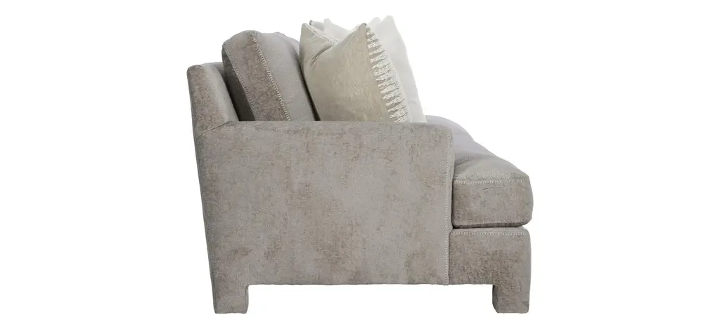 Mily sofa brings a soft touch to the luxe living space. The modern design features a low-profile back and recessed track arms. Sumptuous feather down cushions offers luxurious comfort, while the combination of natural fabric and relaxed tailoring presents a serene, sophisticated look.