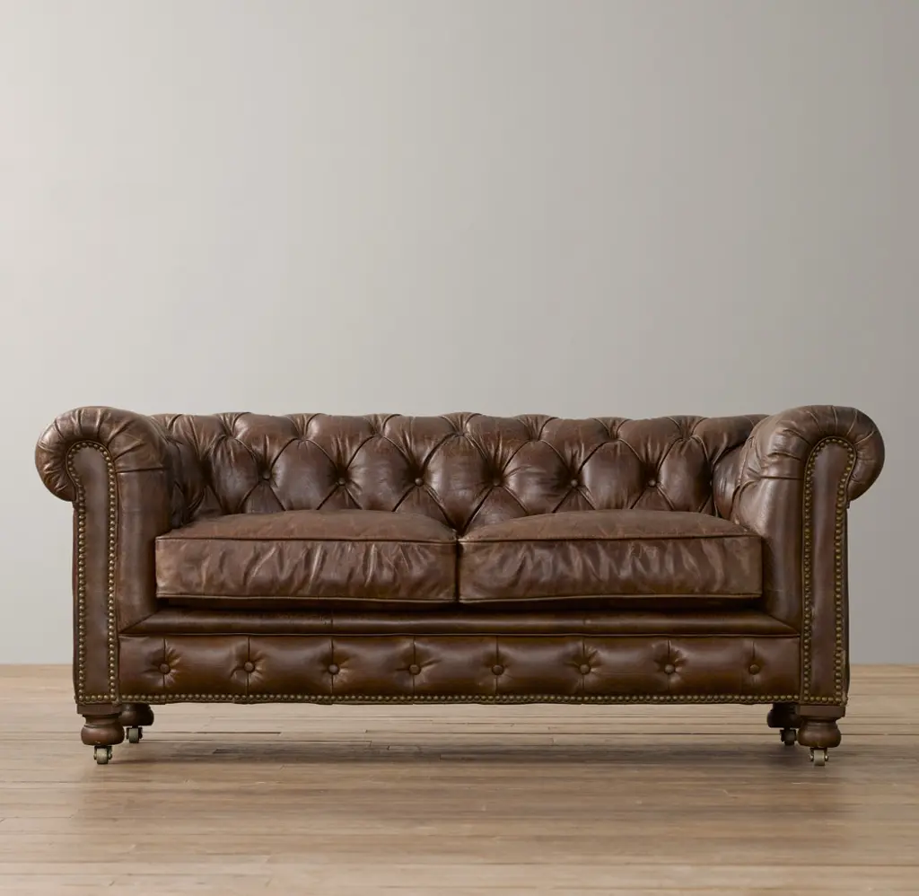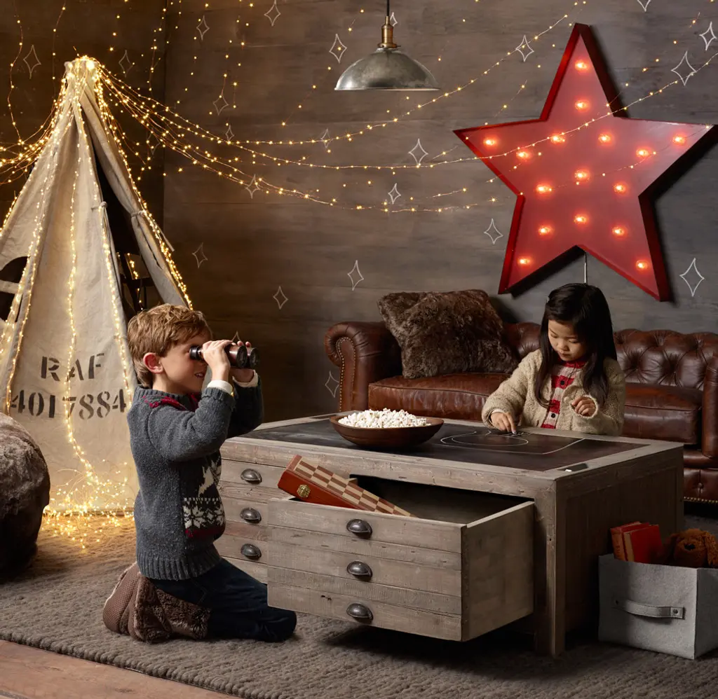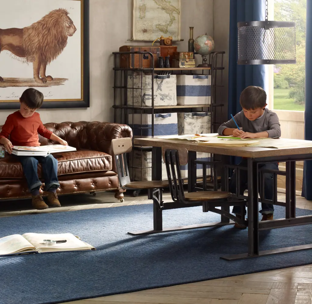 Designed in the grand gentlemen's club tradition – but scaled for its youngest members – this kid-sized sofa is a masterful reproduction by renowned designer Timothy Oulton, of the classic Chesterfield style. Rendered in supple leather with deep tufting, it provides a luxurious spot for little ones to sit back and relax.