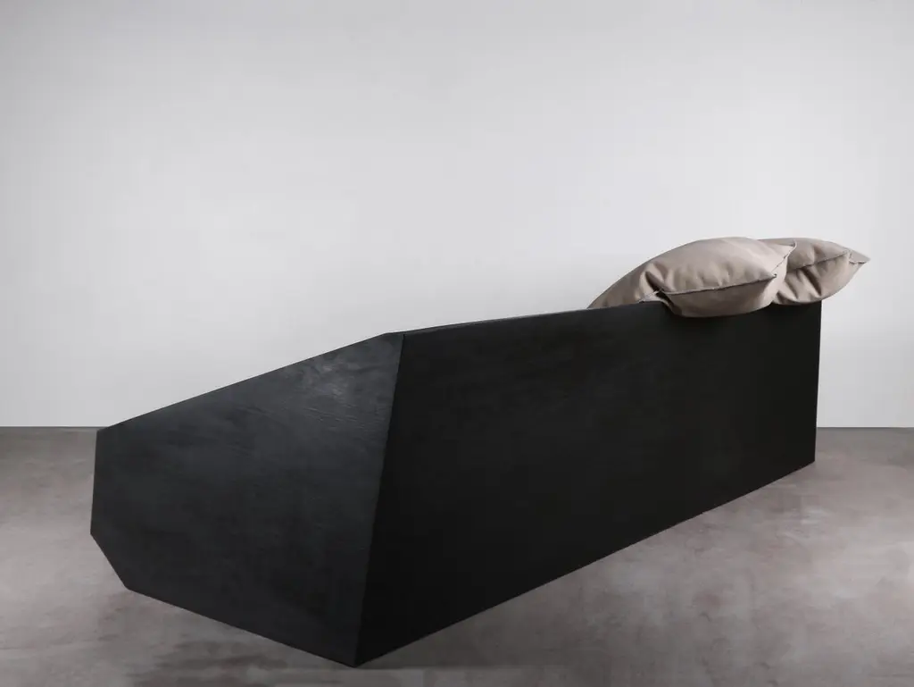 Djup sofa by Lucas Tyra MortenLimited Edition of 15Dimensions: L 240 x W 103 x H 65 cmMaterial: Hand waxed plywood, leatherOccupying the liminal space between art and design, the multidisciplinary atelier of Lucas and Tyra Morten is a small scale artist studio presenting handmade objects and artworks in limited editions. What permeates the experience of their work is their devotion to the impermanence of things. Far from the increasingly technological world where more efficient production lines are created with greater precision, they instead explore the fragility that comes with everything that is transitory. Their works are therefore imbued with an experiential and existential quality that comes with a touch of the artists hands.(All objects are signed and come with a certificate of authenticity. Due to the handmade process, please note that any irregularities or natural blemishes should not be misconstructed as flaws).