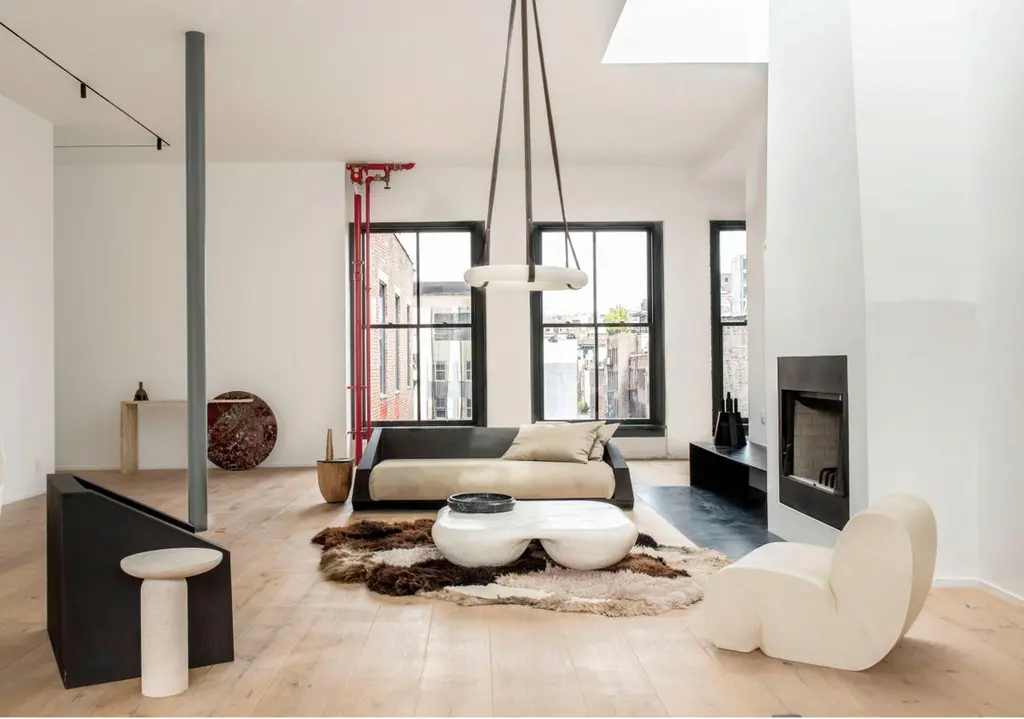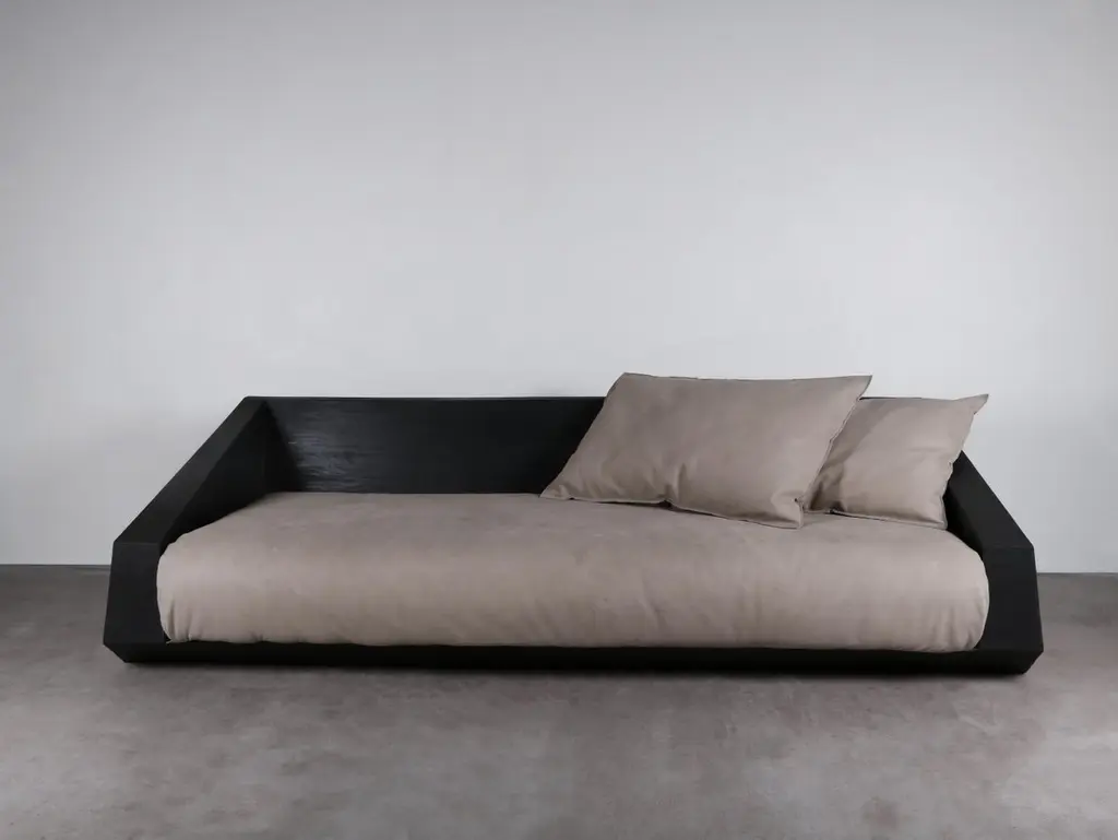 Minimalist Black Plywood Frame Sofa With Beige Cushions By Lucas Tyra Morten