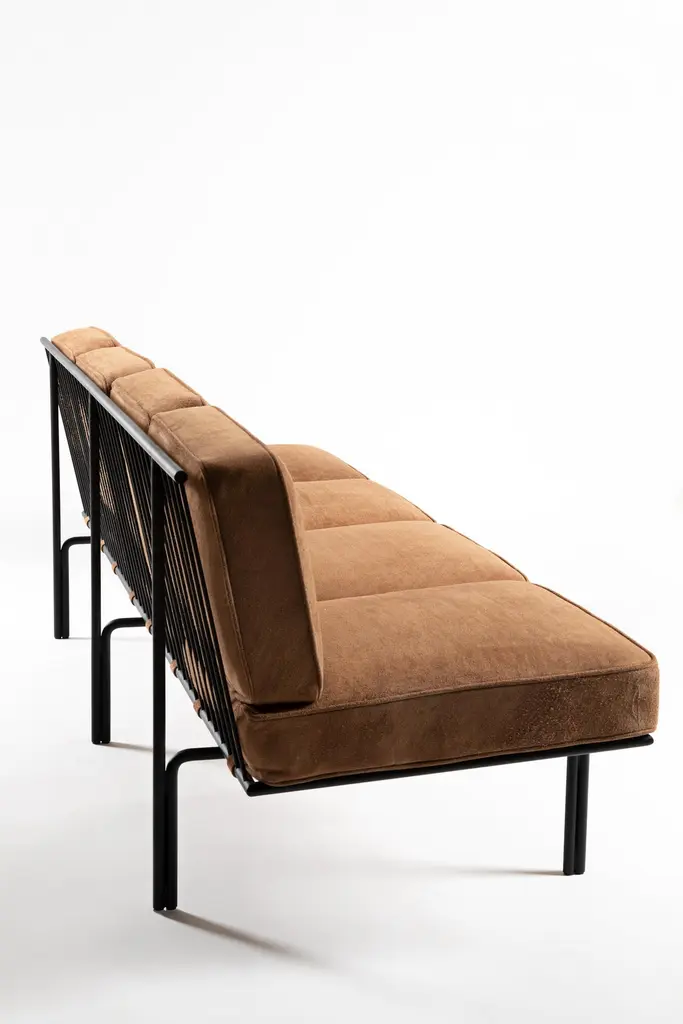 Deia Sofa by Samuel Lamas, 2022Introducing the Deia Sofa, a contemporary Brazilian masterpiece that combines simplicity, lightness, and comfort. Designed with architectural precision, this minimalist sofa features delicate solid carbon steel profiles, hand-welded into the main frame to support the seat and backrest. The absence of arms allows for a more relaxed and versatile use of space, making it a perfect addition to any modern living area.The Deia Sofa is available in configurations of 2, 3, or 4 seats, offering flexibility to fit your specific needs. This custom piece is meticulously made to order in São Paulo, Brazil, ensuring that each sofa is crafted with the utmost attention to detail and quality.Key Features:Dimensions: Available in 2, 3, or 4-seat configurationsMaterials: Premium solid carbon steel and customizable fabric optionsAesthetic: Light and simple, with a focus on geometric and essential designDesign: Contemporary minimalist style that combines elegance and functionalityCustomization Options:Fabric Choices: Available in natural leather, linen, canvas, wool, and suede for exterior or interior upholsteryMetal Frame: Customizable in your desired colorAvailability:In Stock: 1 unit available in 100% natural linen fabric in BrasíliaCare Instructions:To maintain the pristine condition of your Deia Sofa, regularly dust with a soft, dry cloth. For deeper cleaning, use a mild detergent and a damp cloth, ensuring the sofa is completely dry before use. Avoid prolonged exposure to direct sunlight and harsh weather conditions to preserve the color and material integrity.Shipping & Returns:This bespoke item is custom-made and non-returnable, reflecting the personalized attention to detail and craftsmanship invested in each piece. Please contact us for detailed information on shipping and delivery options.Enhance your living space with the Deia Sofa, a perfect blend of modern Brazilian design and minimalist elegance. Enjoy the timeless beauty and functionality of this exquisite addition to your home. Each sofa is crafted with precision and care to meet your unique style preferences.