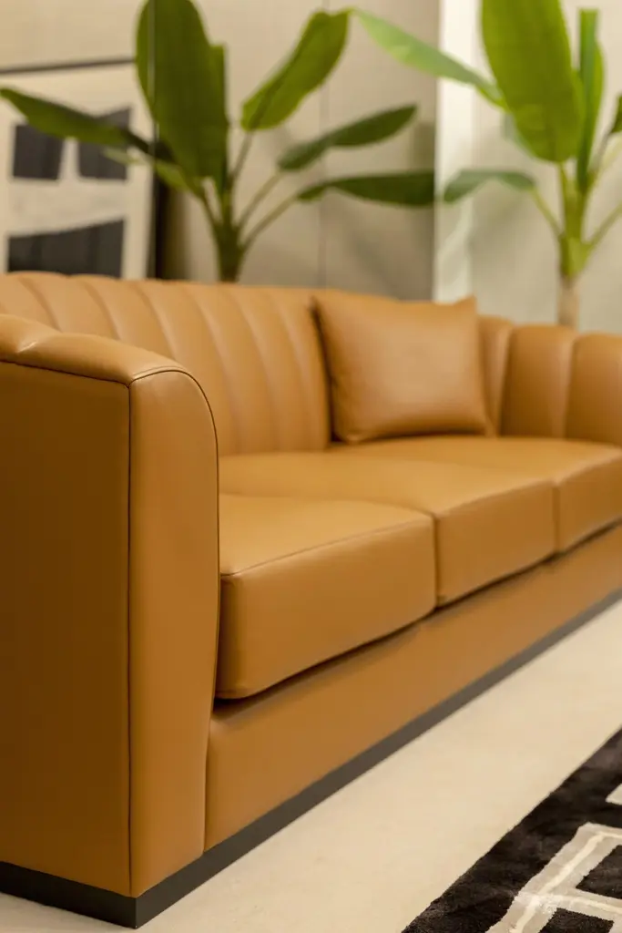 Modern 3 Seats Club Sofa Made With Wood And Leather, Handmade By Stylish Club